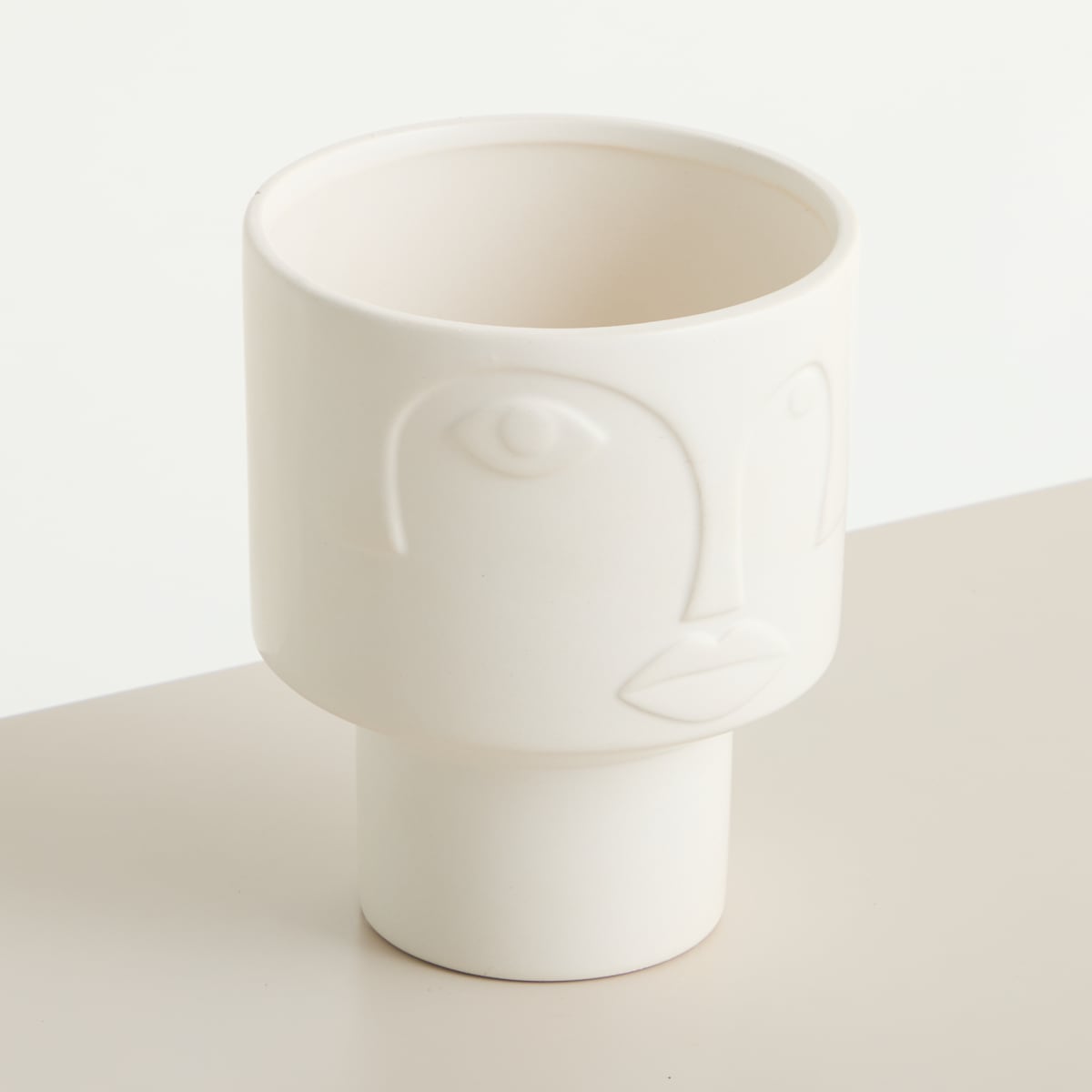 Du bist auf der Suche nach einem Übertopf, der deinen grünen Mitbewohner perfekt in Szene setzt? Hey, dann bist du jetzt fündig geworden! Unser Übertopf „Face“ in mattem Weiß hat ein Gesicht zum Verlieben. Er ist aus Keramik gefertigt und im unteren Bereich mit drei weißen Moosgummifüßchen versehen. Diese sorgen dafür, dass deine Möbel keine Kratzer erleiden. Die Höhe des Topfes beträgt insgesamt 17,5 cm. Der Durchmesser liegt innen bei 13 cm und außen bei 14,5 cm. Na, wäre der lustige Keramiktopf nicht genau das Richtige für deine Lieblingspflanze? Wir finden ja. Also warte nicht zu lange. Der spaßige Geselle freut sich schon auf sein neues Heim.