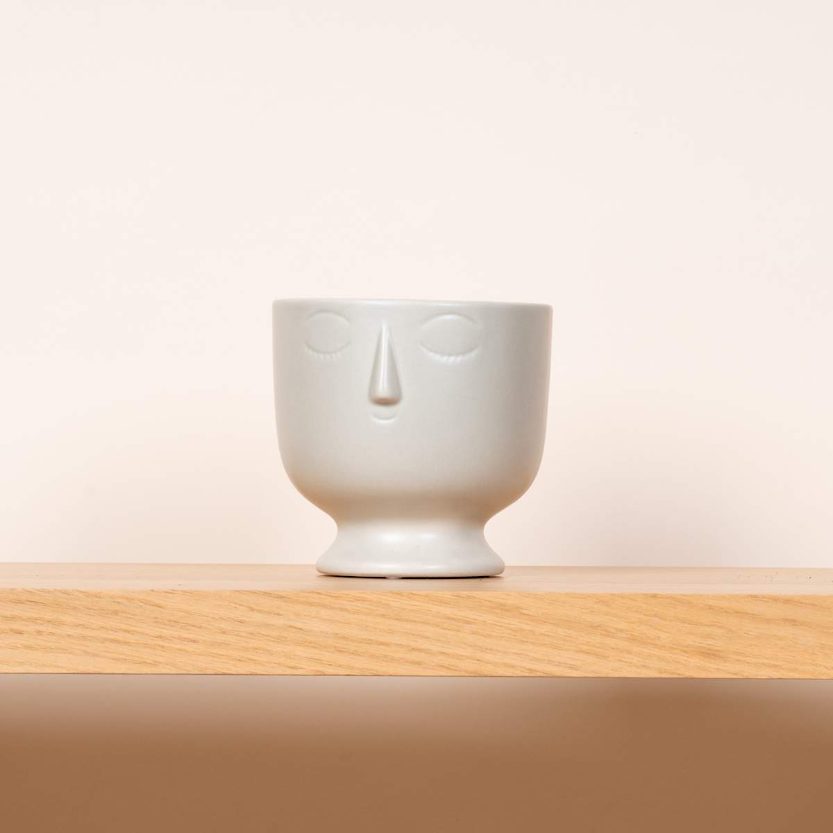 Ist es nicht schön, schon am frühen Morgen in ein freundliches Gesicht zu blicken? Mit unserem tollen „Keramik Übertopf Gesicht Grau“ ist das gar kein Problem. Das lustige Modell besitzt eine matte Oberfläche und steht auf einem kleinen Sockel, fast als wäre es der Hals. Am oberen Rand des Topfes befinden sich die großen Augen und dazwischen die hervorstehende Nase. Er kann zwar nicht sprechen, dennoch fühlt man sich mit diesem hübschen Modell niemals alleine. Die Maße des Keramik-Übertopfes belaufen sich auf 14,5 x 14,5 x 15 cm. Was meinst du, wäre das nicht der perfekte Übertopf für deinen Schreibtisch oder die Fensterbank? Wir finden ihn hip!
