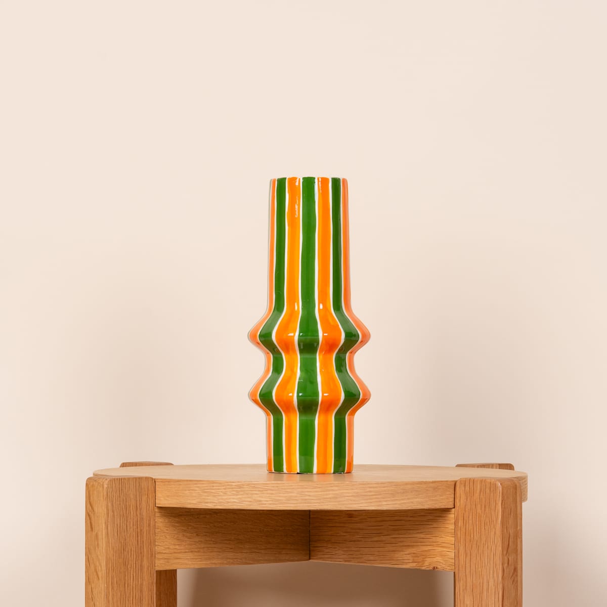 Stell dir vor, wie diese Keramikvase deinen Raum mit lebendigen Farben und modernem Flair bereichert. Mit einer Höhe von 19,5 cm und einem Durchmesser von 10 cm bietet sie ausreichend Platz für deine Lieblingsblumenarrangements. Das markante Streifendesign in Orange/Grün verleiht der Vase einen frischen und dynamischen Look, der sofort ins Auge fällt. Kannst du dir vorstellen, wie sie deine Blumenpräsentationen aufwertet? Das besondere Highlight dieser Vase ist ihre Zackenform, die ihr einen originellen und einzigartigen Charakter verleiht. Warum also nicht deine Blumensträuße oder einzelne Blumen in dieser besonderen Vase präsentieren und damit einen Hauch von Eleganz und Stil in dein Zuhause bringen? Hol dir jetzt die Keramikvase mit ZickZack-Design in Orange und Grün und erlebe, wie sie deine Wohnräume auf eine neue Ebene hebt!