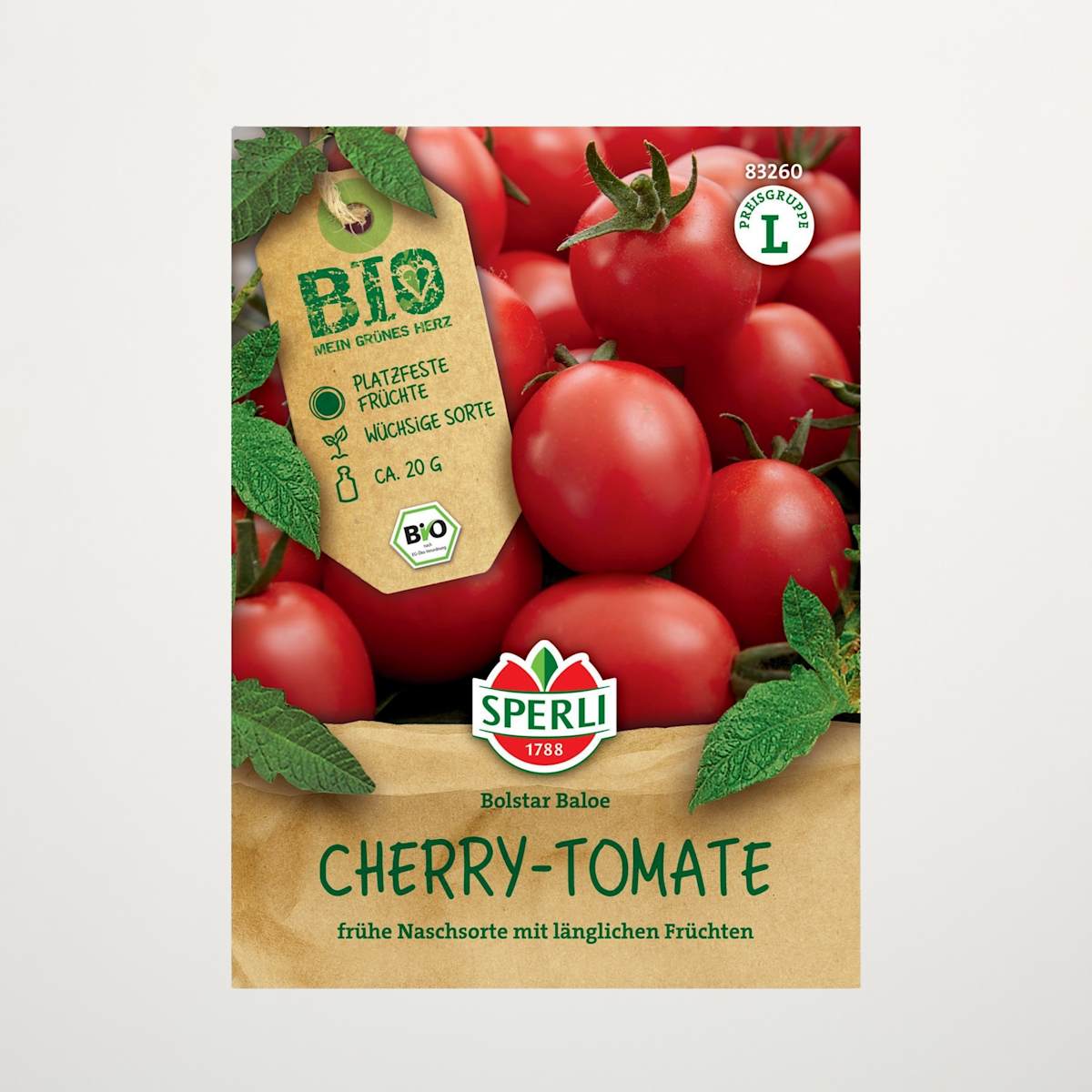 Ein Gartenjahr will gut vorbereitet sein. Dabei solltest du auch die kleinen Naschereien für zwischendurch nicht vergessen! Ganz gesund natürlich, deshalb auch die BIO Kirschtomate ‚Bolstar Baloe‘ F1. Zwischen Februar und April kannst du sie mit diesen Samen vorziehen. Ab Mai pflanzt du sie dann nach draußen an einen geschützten, sonnigen Ort mit nährstoffreicher Erde. Immer genug gießen und diese bis zu 2,5 m hoch werdende Vertreterin der Art Lycopersicon esculentum versorgt dich ab Juli mit ihren länglichen, roten Kirschtomaten. Diese sind nicht zu groß und nicht zu klein, perfekt um sie zwischendurch mal zu naschen. Aber natürlich eignen sie sich auch für Salate und andere Köstlichkeiten.