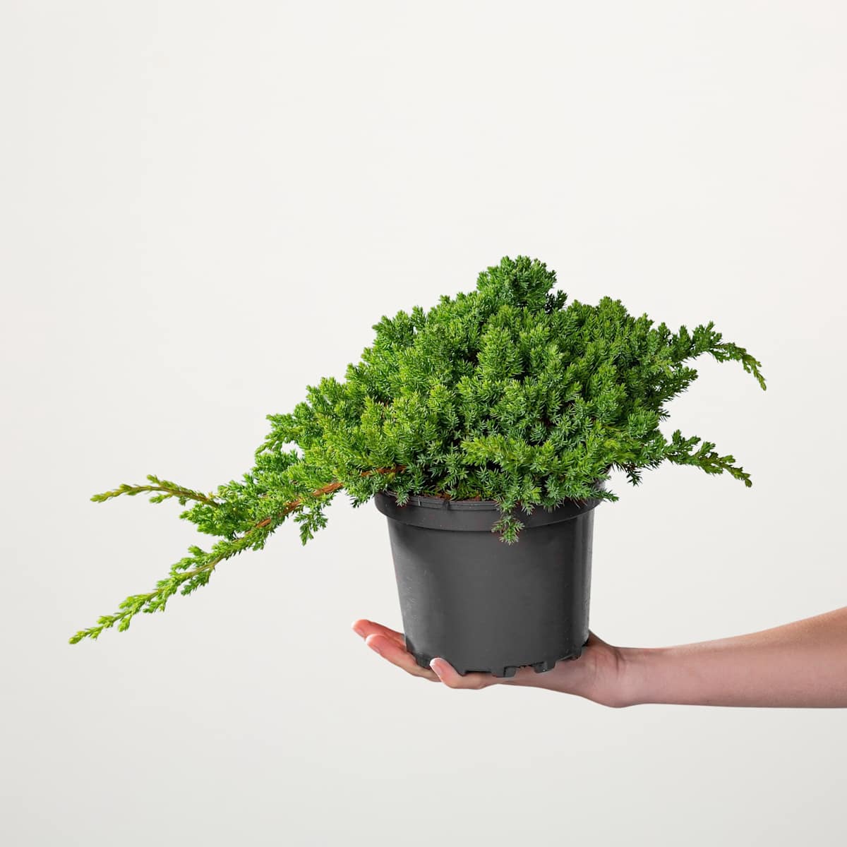 Da kriecht doch was durch deinen Garten? Na klar, es ist der Kriechwacholder ‚Nana‘. Er wächst schön flach, bei einer Breite von bis zu 1,5 m wird er gerade mal 50 cm hoch. Seine immergrünen Nadeln sind herrlich blau-grün gefärbt und machen aus diesem Vertreter der Art Juniperus procumbens einen attraktiven Bodendecker. Übrigens kannst du ihn auch in Kübeln auf Balkon oder Terrasse pflanzen. Der Kriechwacholder ‚Nana‘ macht dir nicht viel Arbeit. Ausreichend Wasser, dazu ein sonniger bis halbschattiger Standort, mehr braucht er nicht um munter zu wachsen.