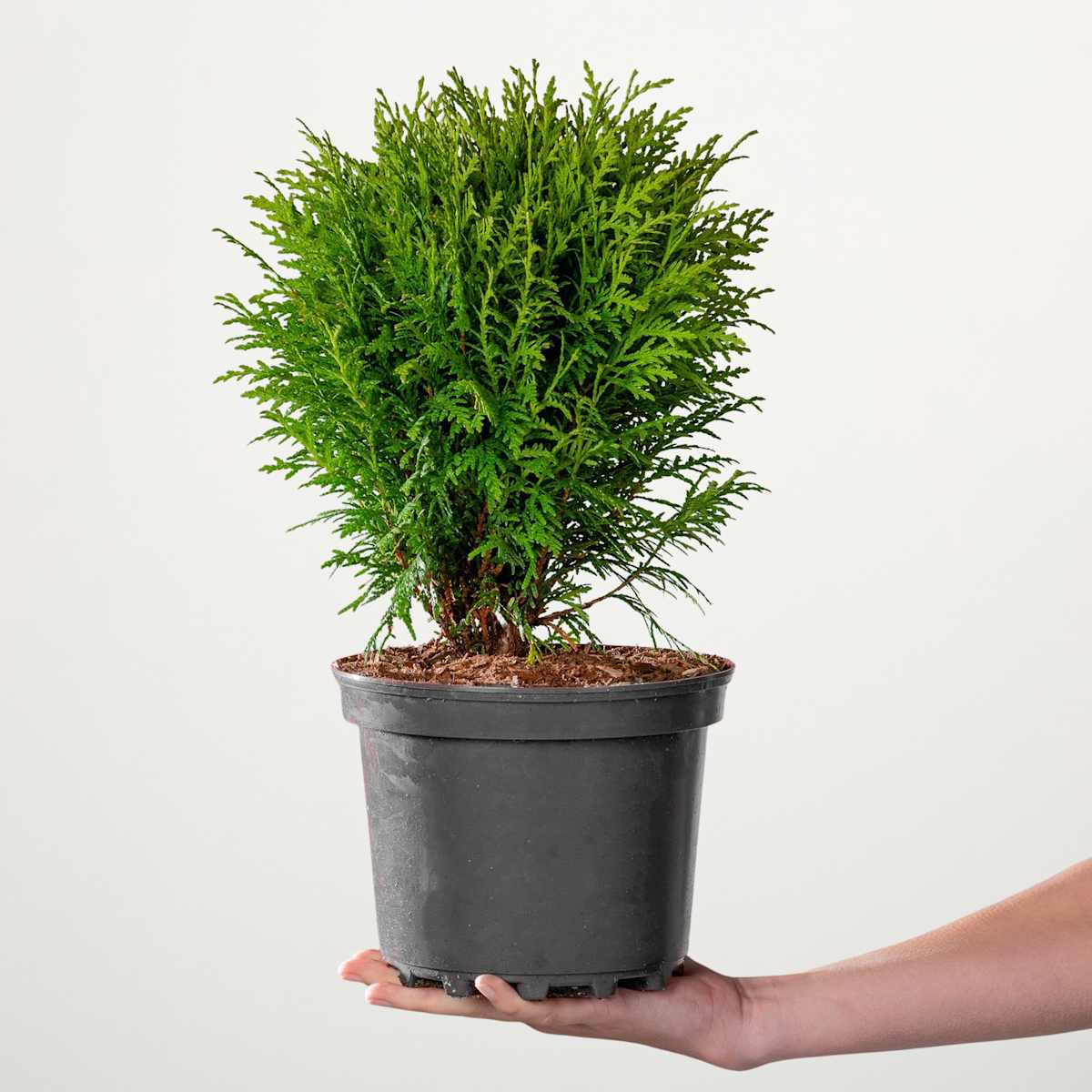 Einen Igel im Garten zu haben ist doch etwas Feines! Aber sei nicht traurig, wenn bei dir noch kein Stacheltierchen eingezogen ist. Du kannst ja erstmal den Kugel-Lebensbaum ‚Mecki‘ pflanzen. Dieser Vertreter aus der Art Thuja occidentalis ist rundum auch eine feine Sache. Seine schuppenförmigen, dunkelgrünen Nadeln sind immergrün und sorgen so auch im Winter für farbige Akzente. Die runde Form ist bei ihm übrigens ganz natürlich, der Kugel-Lebensbaum ‚Mecki‘ wird etwa 80 cm hoch und ca. 1 m breit. Perfekt also auch für Kübel auf Balkon oder Terrasse.Der Kugel-Lebensbaum ‚Mecki‘ macht dir nicht viel Arbeit. Ausreichend Wasser, dazu ein sonniger bis halbschattiger Standort, mehr braucht er nicht um munter zu wachsen.