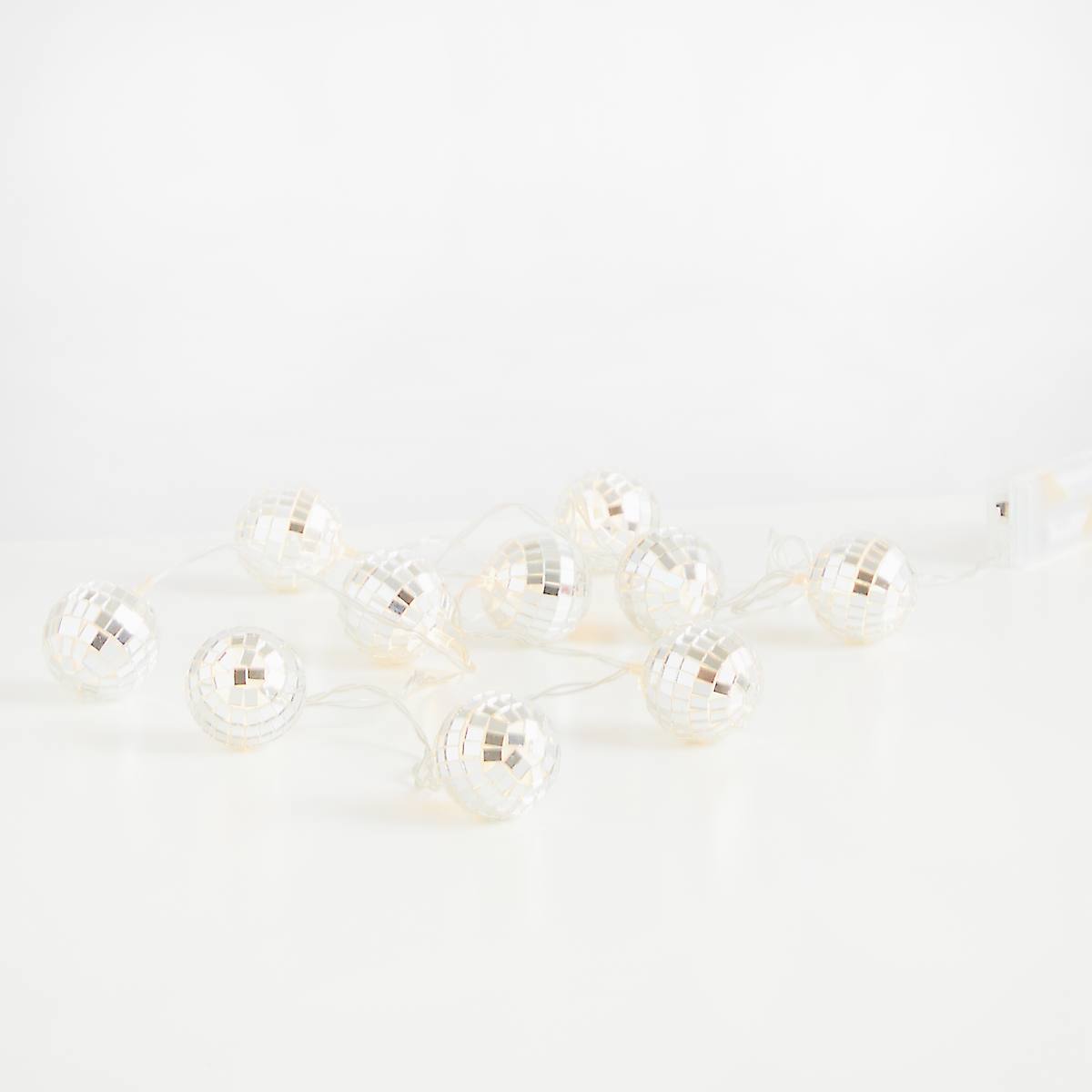 Die Deko Lichterkette Disco in Silberfarben sorgt für gute Stimmung und bringt einen Hauch von Party-Feeling in jeden Raum. Mit ihren 10 glänzenden Discokugeln, die je 7 cm lang und 4,5 cm breit sind, schafft sie eine einzigartige Atmosphäre – perfekt, um ein gemütliches Ambiente zu kreieren oder besondere Akzente zu setzen. Die Gesamtlänge der Lichterkette beträgt 110 cm, sodass sie sich ideal für Regale, Wände oder Fensterrahmen eignet. Egal, ob du sie für eine Feier oder als stylisches Deko-Element nutzt – diese Lichterkette wird garantiert zum Highlight und lässt jeden Raum in einem coolen, discoartigen Glanz erstrahlen.