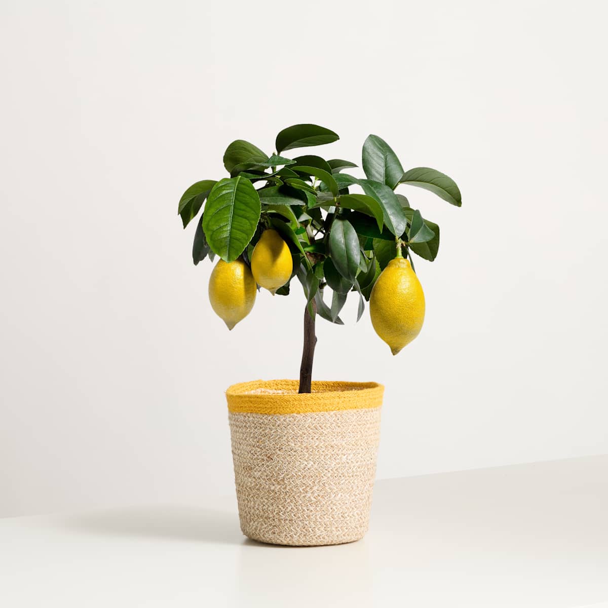 Mit unserem zauberhaften Zitronenbaum Little Lemon verleihst du Terrasse und Balkon ein mediterranes Flair. Die Pflanze befindet sich in einem Topf mit 16 cm Größe und erreicht dich inklusive passendem Übertopf aus dekorativem Korb. Ihre Wuchshöhe beträgt etwa 45 cm.Gönne der Zitrone einen hellen und sonnigen Standort, der vor Regen und Wind geschützt ist. Im Winter benötigt die exotische Schönheit ein frostfreies Plätzchen. Was den Wasserbedarf betrifft, ist die Zitrone recht genügsam. Dennoch sollte sie nicht komplett austrocknen. Ihre Blätter sind immergrün, und aus den intensiv duftenden weißen Blüten entwickeln sich herrliche Früchte. Diese sind nicht nur eine hübsche Zierde, sie dienen auch als köstliche Bereicherung deines Speiseplans. Wegen der Empfindlichkeit der Früchte werden die Bäumchen lediglich mit Blüten oder Fruchtansätzen geliefert.