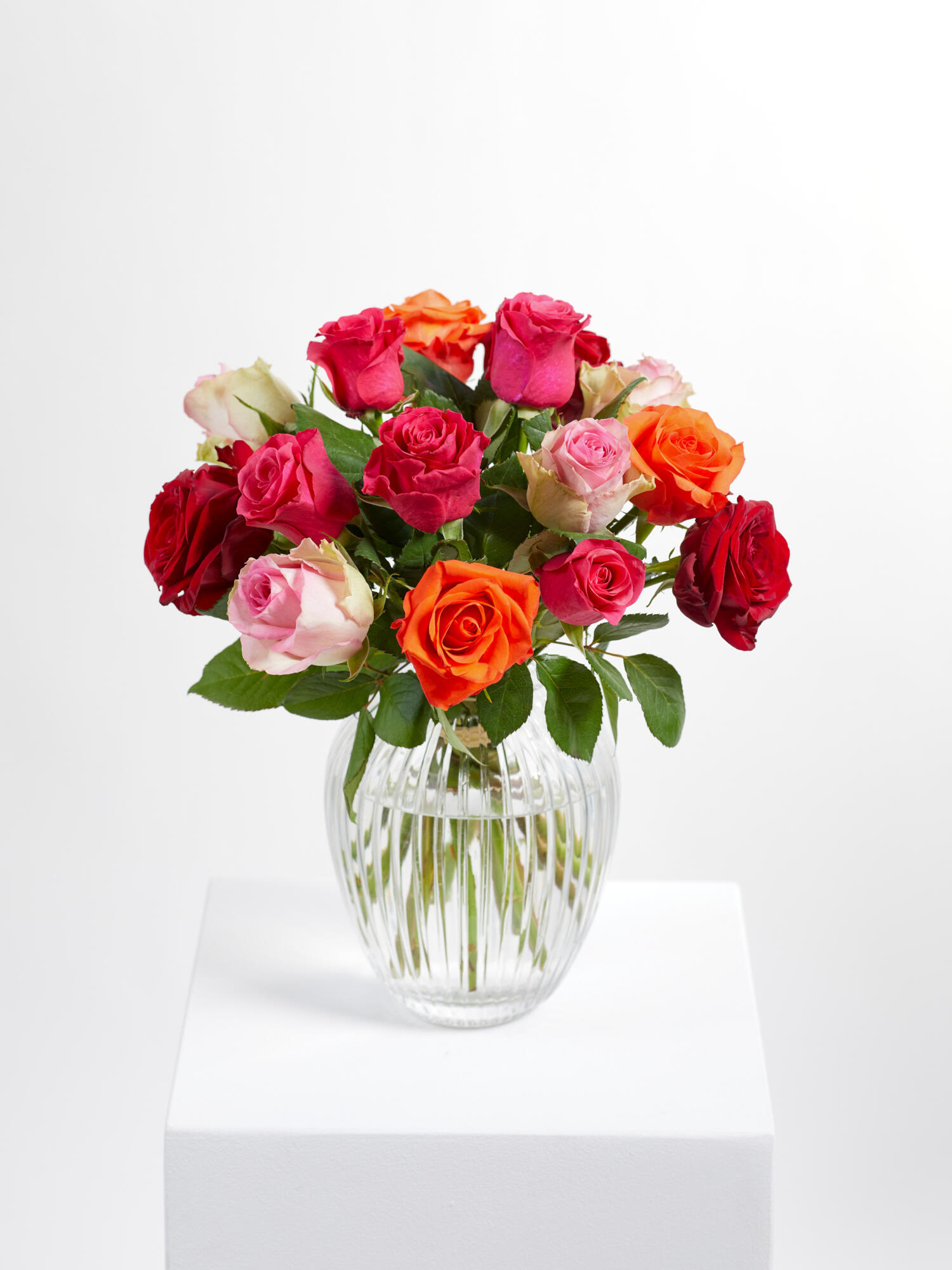Überraschen Sie Ihre Liebste oder Ihren Liebsten zum Valentinstag mit diesem bezaubernden Rosenstrauß in Rot-Pink-Rosa-Orange.