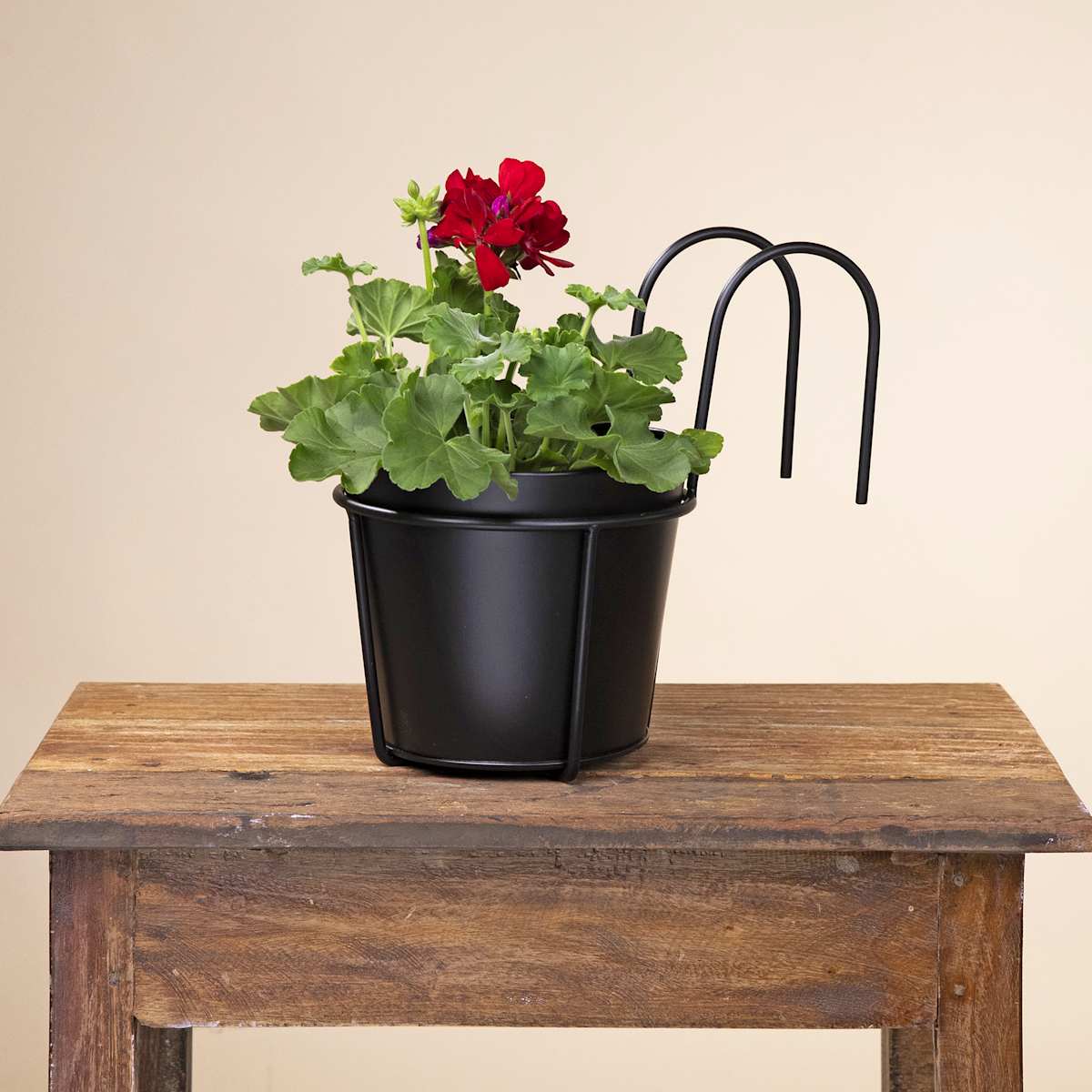 Mach deinen Balkon zu einem grünen Gartenparadies. Wie das geht? Zum Beispiel mit unserem „Metall Balkontopfhänger Schwarz 16 cm“, das sich zur Befestigung einfach an das Balkongeländer anhängen lässt. Das Gestell hat eine Höhe von 26 cm, eine Breite von 17,5 cm und eine Tiefe von insgesamt 26 cm. Die Haken zum Einhängen sind 10 cm tief. Der Übertopf selbst ist 14,5 cm hoch und hat einen Außendurchmesser von 17 cm. Wie wäre es, wenn du ihn mit hübschen Hängepetunien oder auch Hängegeranien bestückst? Der Hängeübertopf ist aus Metall gefertigt und besitzt eine matte Oberfläche. Je mehr Hängeübertöpfe du aufhängst, desto grüner wird es!