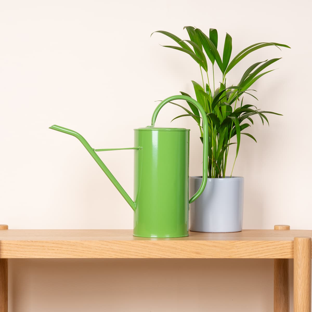 Begieße deine Pflanzen mit Stil – diese grüne Gießkanne aus Metall hat ein sehr reduziertes Design und wirkt auf den ersten Blick wie eine altmodische Vintage-Kanne. In feinen Details weicht die Kanne leicht von historischen Vorbildern ab. Der 33 cm hohe, zylindrische Körper der Gießkanne ist mit einem langen, oval gebundenen Handgriff verbunden und der am Ende wie ein Strohhalm leicht abgeknickte Gieß-Stutzen steht im 45-Grad-Winkel von der Kanne ab, mittig durch eine einzelne, waagerechte Strebe gesichert. Die eleganten geometrischen Formen lassen beim Gießen von Pflanzen einen Hauch von Bauhaus-Design aufkommen. Diese Gießkanne fasst insgesamt 3 Liter Wasser.