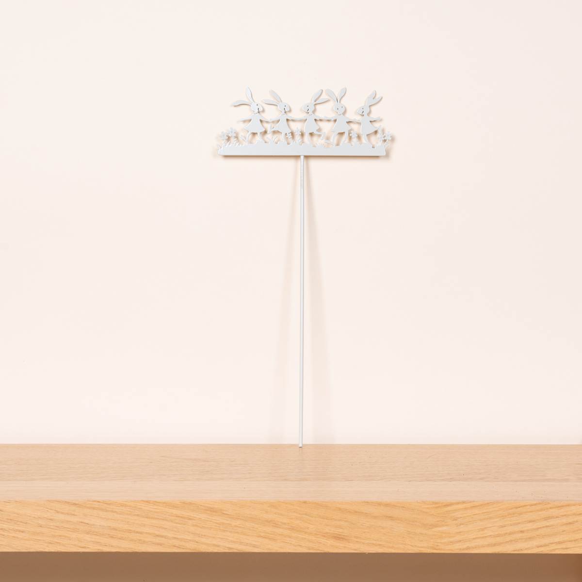 Was hältst du von einer Hasenparty in deinem Blumenkübel? Wäre das nicht gerade zu Ostern eine tolle Idee? Unser „Metall Stecker Hasenparty Creme“ bringt Stimmung in triste Blumenkästen. Schau mal, wie fröhlich die süßen Langohren feiern! Die Gesamthöhe des Metall-Steckers beträgt 30,5 cm. Hiervon entfallen 25 cm auf den sichtbaren Stab, den du im Erdreich versenkst. Das Motiv selbst hat eine Höhe von 5,5 cm und eine Breite von 15 cm. Für ein hübsches Finish sorgt die halbglänzende Lackierung. Na, was sagst du? Gefällt dir unser Hasen-Stecker? Wir finden, diese Fröhlichkeit steckt einfach an. Schließlich ist der Frühling die schönste Zeit des Jahres und muss gefeiert werden!