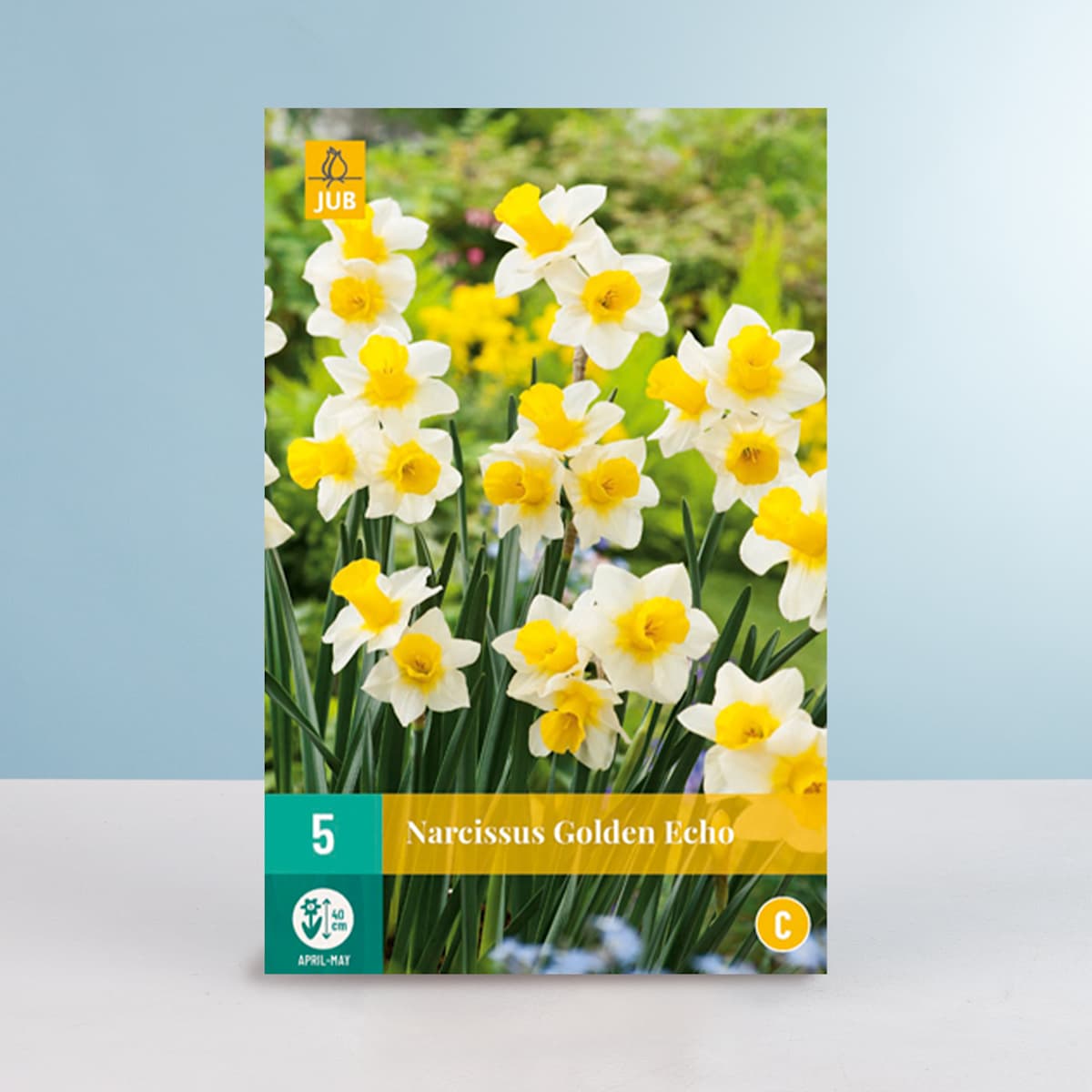 Im Frühling verwandelt sich alles und fängt an zu grünen, zu blühen und das Leben zu feiern. Auch die Mini-Narzissen ‚Golden Echo‘ ist mit Eifer dabei und macht so richtig Party. Ab April sorgt sie mit ihren weiß-gelben Blüten für legendäre Auftritte, inklusive sagenhaftem Blütenduft. Sie wird etwa 40 cm hoch und 10 cm breit. Daher kannst du die 5 Zwiebeln, die du erhältst, auch wunderbar in Blumenkübel und Balkonkästen setzen. Hauptsache Narcissus Hybrid ‚Golden Echo‘, wie sie sich botanisch nennt, bekommt durchlässige Erde und einen windgeschützten, sonnigen Standort.