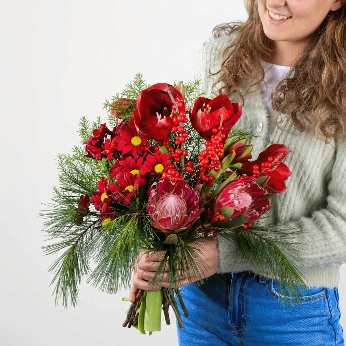Was wären wir ohne unseren Lieblingsmenschen, der uns immer zur Seite steht? Das kann sowohl der Partner sein, als auch die Lieblingskollegin, die Schwester oder die beste Freundin. Das ist ein großes Dankeschön wert! Aus diesem Anlass haben wir für dich und deinen Herzensmenschen den stimmungsvollen Blumenstrauß Only for you zusammengestellt. Der festliche Gruß in der Weihnachtszeit enthält hübsche Chrysanthemen, atemberaubende Amaryllis, Ilex, exklusive Protea sowie Sicheltanne und herrlich duftendes Kieferngrün. Mit einer Stiellänge von etwa 50 cm setzt sich das natürliche Kunstwerk überall gekonnt in Szene. Dein Lieblingsmensch hat es sich verdient und wird garantiert begeistert sein. Wir bringen Augen zum Strahlen! Frohe Weihnachten!