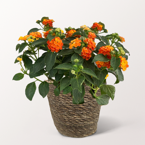 Ein strahlend oranges Wandelröschen (auch Lantane) fasziniert mit einem lebendigen Farbspiel. Es wird in einem Keramiktopf oder einem Korb (Ø ca. 13 cm) und erreicht eine Gesamthöhe von ca. 25 cm. Eine fröhliche pflegeleichte Blühpflanze für drinnen und draußen.Hinweis: Bitte beachte dass der Lieferzustand nicht vollständig mit Blüten erfolgt.Alle Pflanzenteile sind giftig besonders die reifen und unreifen Früchte.Hersteller:FloraPrima GmbHDidderser Str. 2838176 Wendeburginfo@floraprima.de