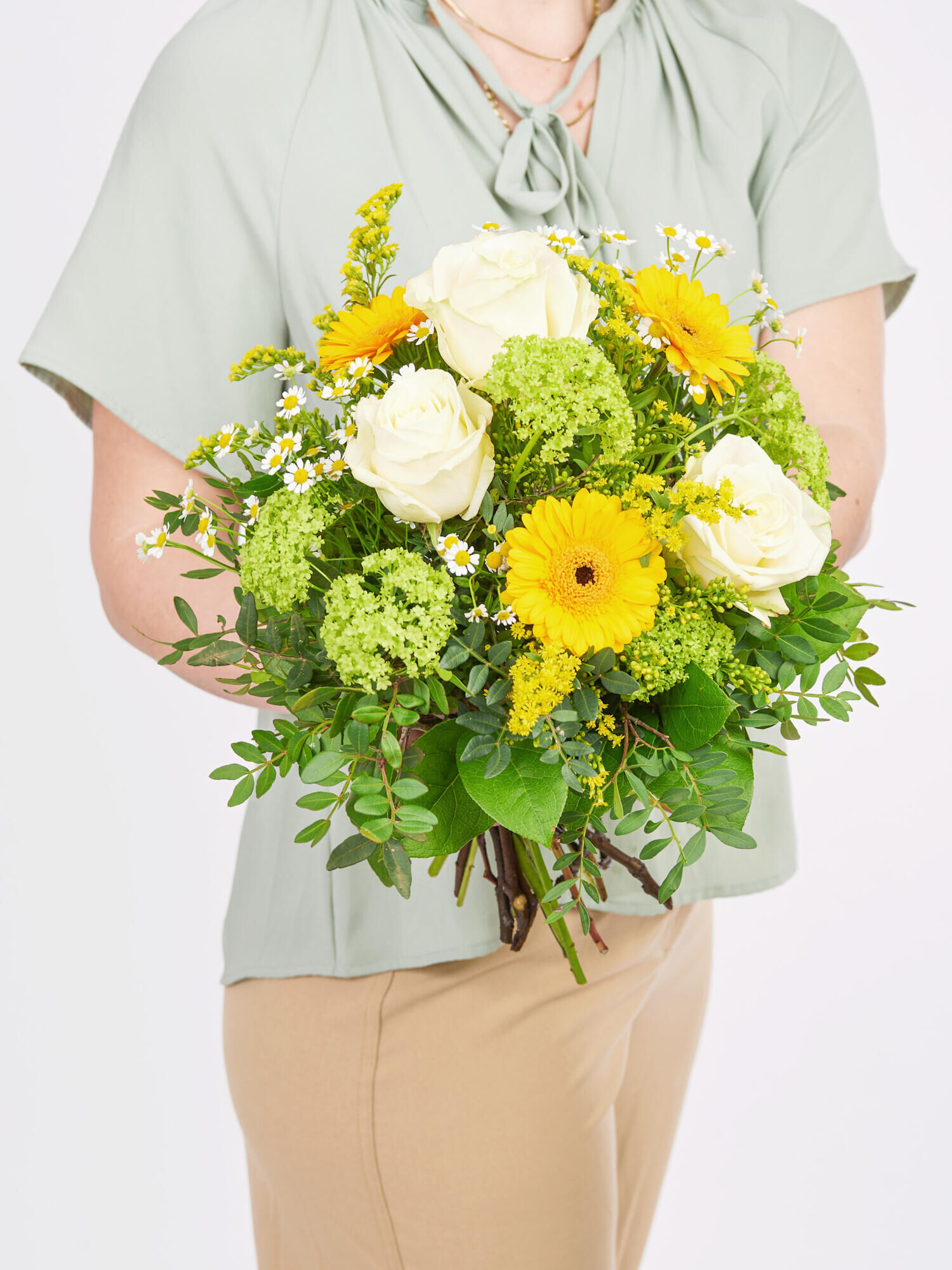 Verschenken Sie zu Ostern diesen farbenfrohen Strauß in Gelb-Weiß-Grün. ➤ Jetzt online bestellen und deutschlandweit mit Fleurop versenden.