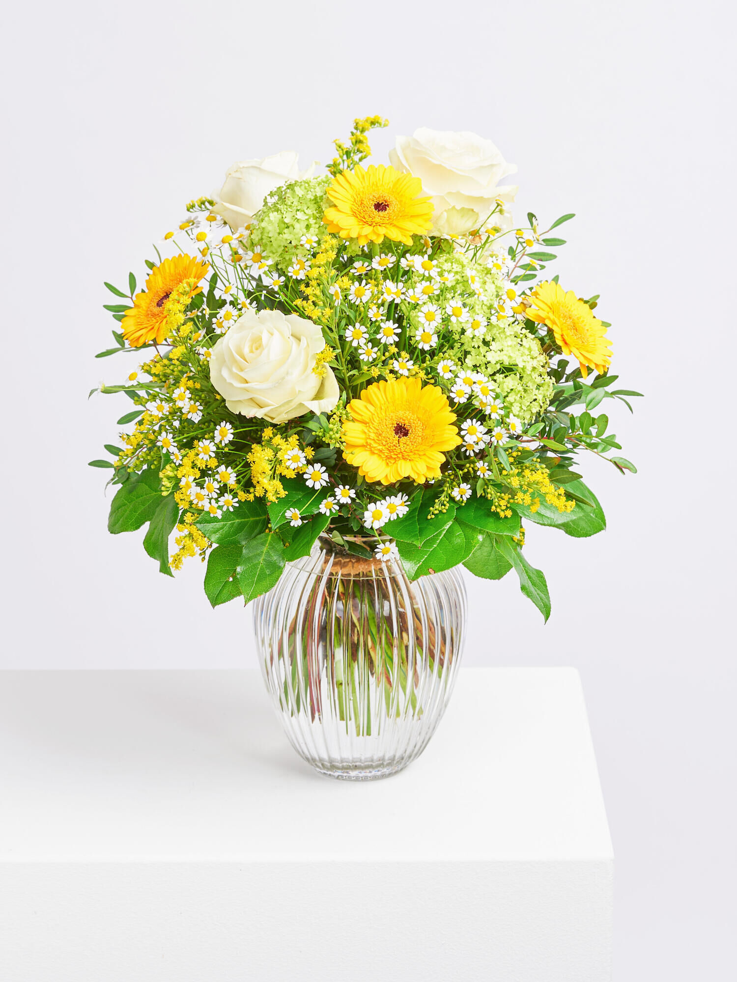 Verschenken Sie zu Ostern diesen farbenfrohen Strauß in Gelb-Weiß-Grün. ➤ Jetzt online bestellen und deutschlandweit mit Fleurop versenden.