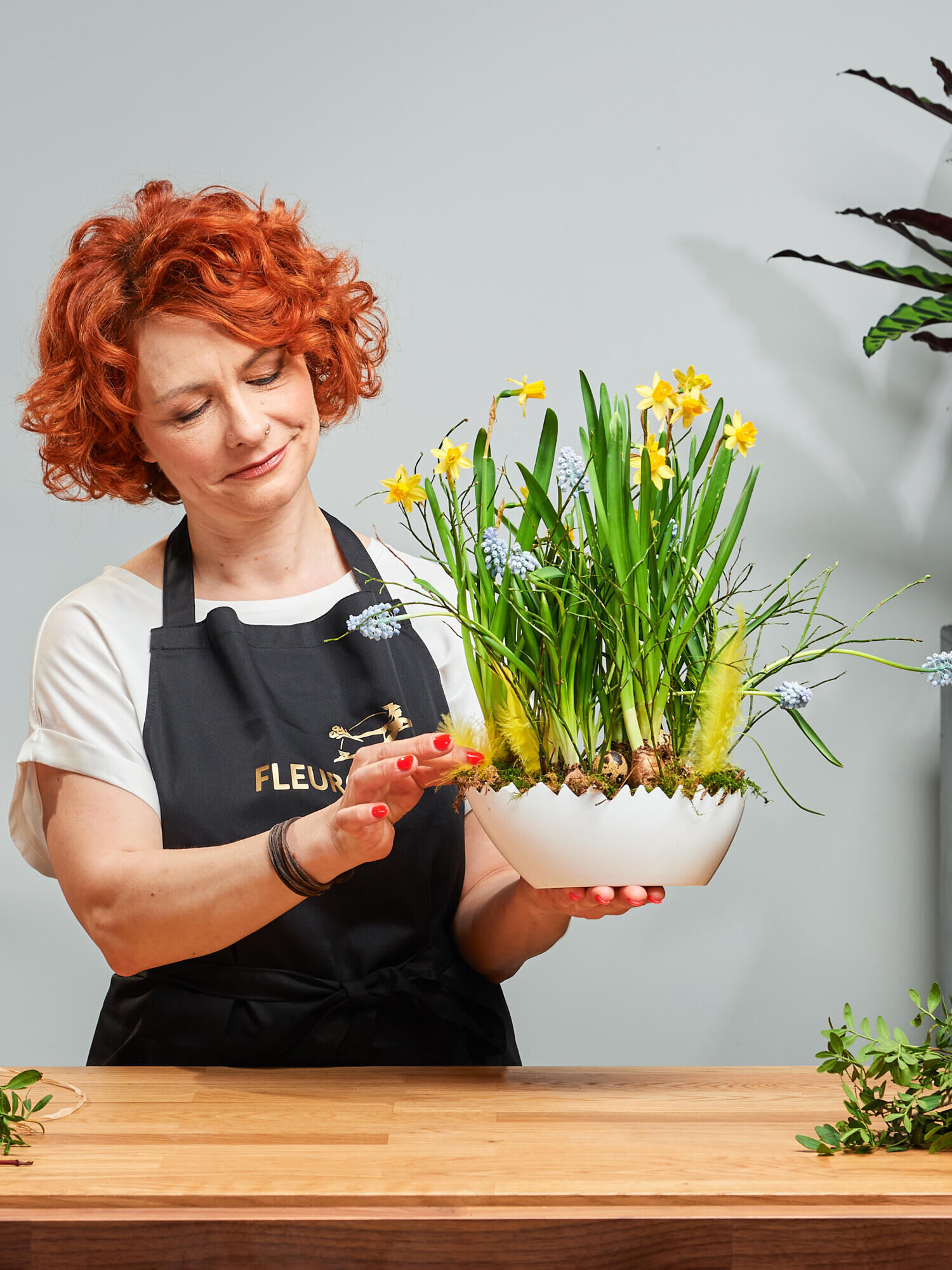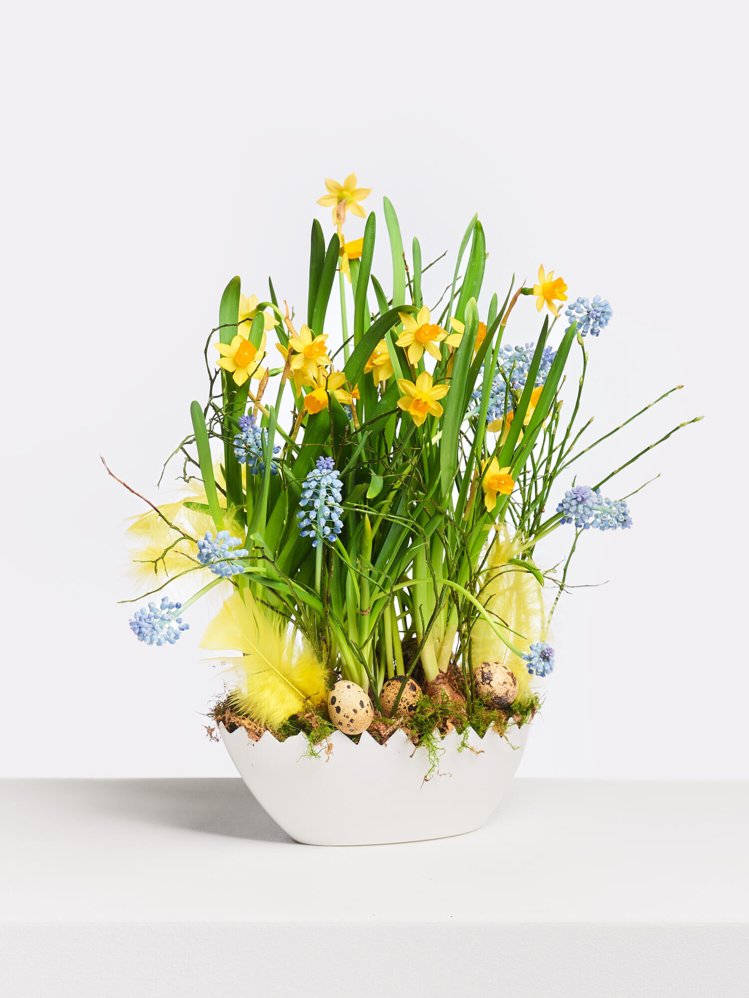 Das Muscari- und Narzissen-Pflanzenarrangement „Osternest“ verschicken mit dem Fleurop Blumenversand. ➤ Jetzt online bestellen und Osterfreude verschenken!