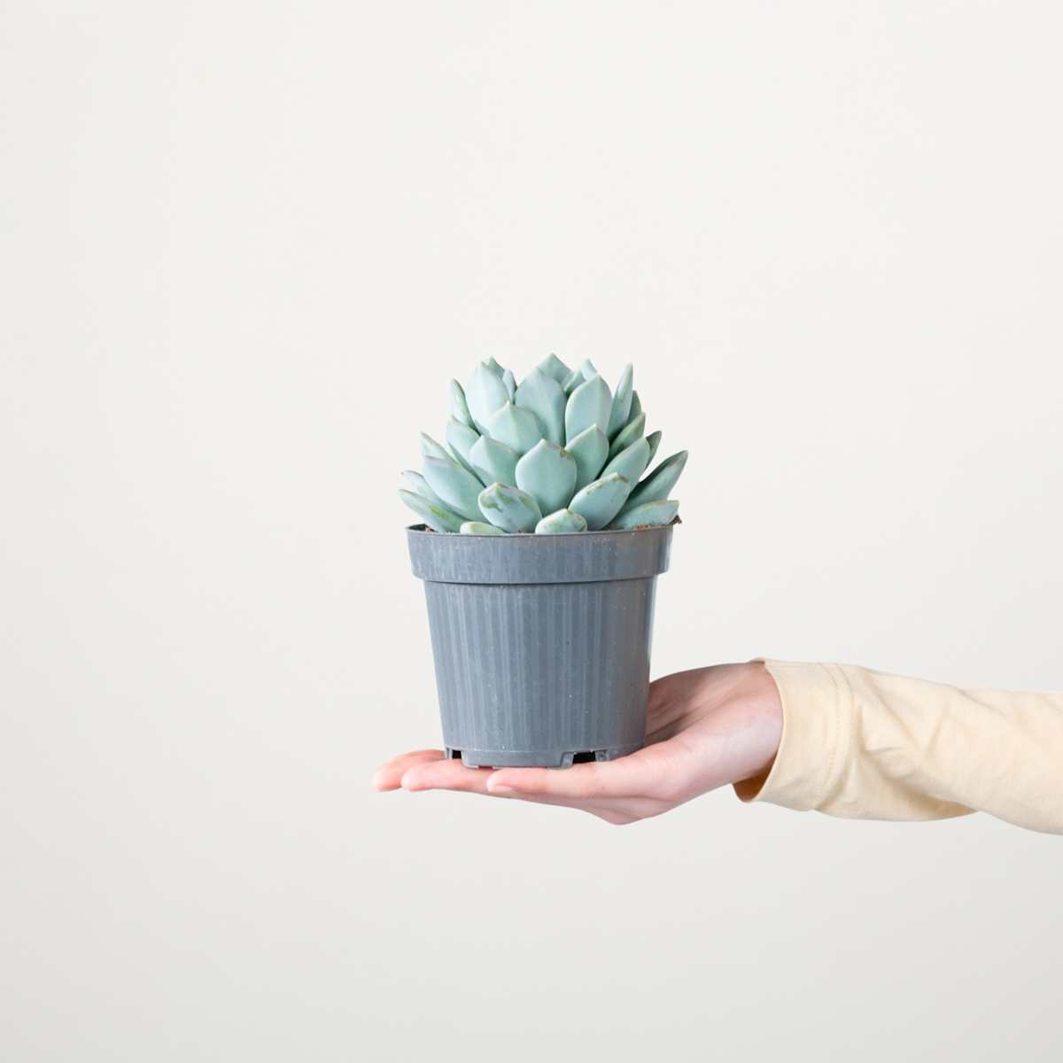 Die Pachyveria ‚Corvus‘ ist eine echt spannende Pflanze. Zum einen, weil sie eine Kreuzung aus Pachyphytum und Echeveria ist, diesen beiden wunderbaren Sukkulenten. Zum anderen, weil sie eine genauso wunderbare Sukkulente ist. Ihre dickfleischigen, hellgrünen Blätter sehen mit ihrem silbrigweißen Überzug, in der Botanik als Bereifung bekannt, echt faszinierend aus. Dazu ordnet die Pachyveria ‚Corvus‘ die Blätter zu adretten Rosetten an, die etwa 25 cm hoch und breit werden können. Und zu guter Letzt, sie ist total pflegeleicht! Du hast vergessen sie zu gießen? Kein Problem, sie ist eine echte Überlebenskünstlerin. Wassersparen ist bei ihr vorprogrammiert und sie übersteht Trockenperioden mit Links. Sonst ist sie mit einem sonnigen Standort voll und ganz zufrieden.
