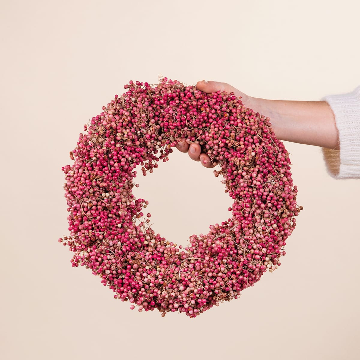 Unser Pfefferbeerenkranz mit einem Durchmesser von 30 cm in strahlendem Pink ist eine lebendige Hommage an die Farbenpracht der Natur. Hergestellt aus echten Pfefferbeeren, ist jeder Kranz ein einzigartiges Kunstwerk. Da Pfefferbeeren ein Naturprodukt sind, kann die Farbe und Form leicht variieren, was jedem Kranz eine individuelle Note verleiht. Dieser vielseitige Kranz eignet sich perfekt als einladende Dekoration an der Tür, als Basis für einen beeindruckenden Adventskranz oder für andere kreative Dekozwecke. Die zeitlose Schönheit dieses Pfefferbeerenkranzes wird dich begeistern und verleiht jedem Raum einen Hauch von Eleganz. Entdecke die natürliche Pracht und hol dir ein Stück Natur in dein Zuhause!