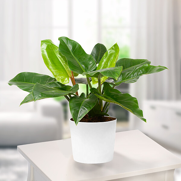 Der Philodendron zählt zu den pflegeleichten Zimmerpflanzen die nur geringe Anforderungen an ihre Umgebung stellen. Die Wuchshöhe beträgt ca. 80-100 cm. Die Blätter sind grün. Diese Pflanze gehört zu den Raumluftverbessern. Demnach filtert der Philodendron zahlreiche Schadstoffe aus der Luft. Hinweis: Die Pflanze wird in einem Kulturtopf geliefert. Der abgebildete Übertopf gehört nicht zum Lieferumfang.Die Pflanze ist giftig. Hersteller:FloraPrima GmbHDidderser Str. 2838176 Wendeburginfo@floraprima.de