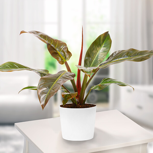 Der Philodendron zählt zu den pflegeleichten Zimmerpflanzen die nur geringe Anforderungen an ihre Umgebung stellen. Die Wuchshöhe beträgt ca. 80-100 cm. Die Blätter sind grün-rot. Diese Pflanze gehört zu den Raumluftverbessern. Demnach filtert der Philodendron zahlreiche Schadstoffe aus der Luft. Die Lieferhöhe beträgt ca. 30-50 cm. Hinweis: Die Pflanze wird in einem Kulturtopf geliefert. Der abgebildete Übertopf gehört nicht zum Lieferumfang.Die Pflanze ist giftig. Hersteller:FloraPrima GmbHDidderser Str. 2838176 Wendeburginfo@floraprima.de