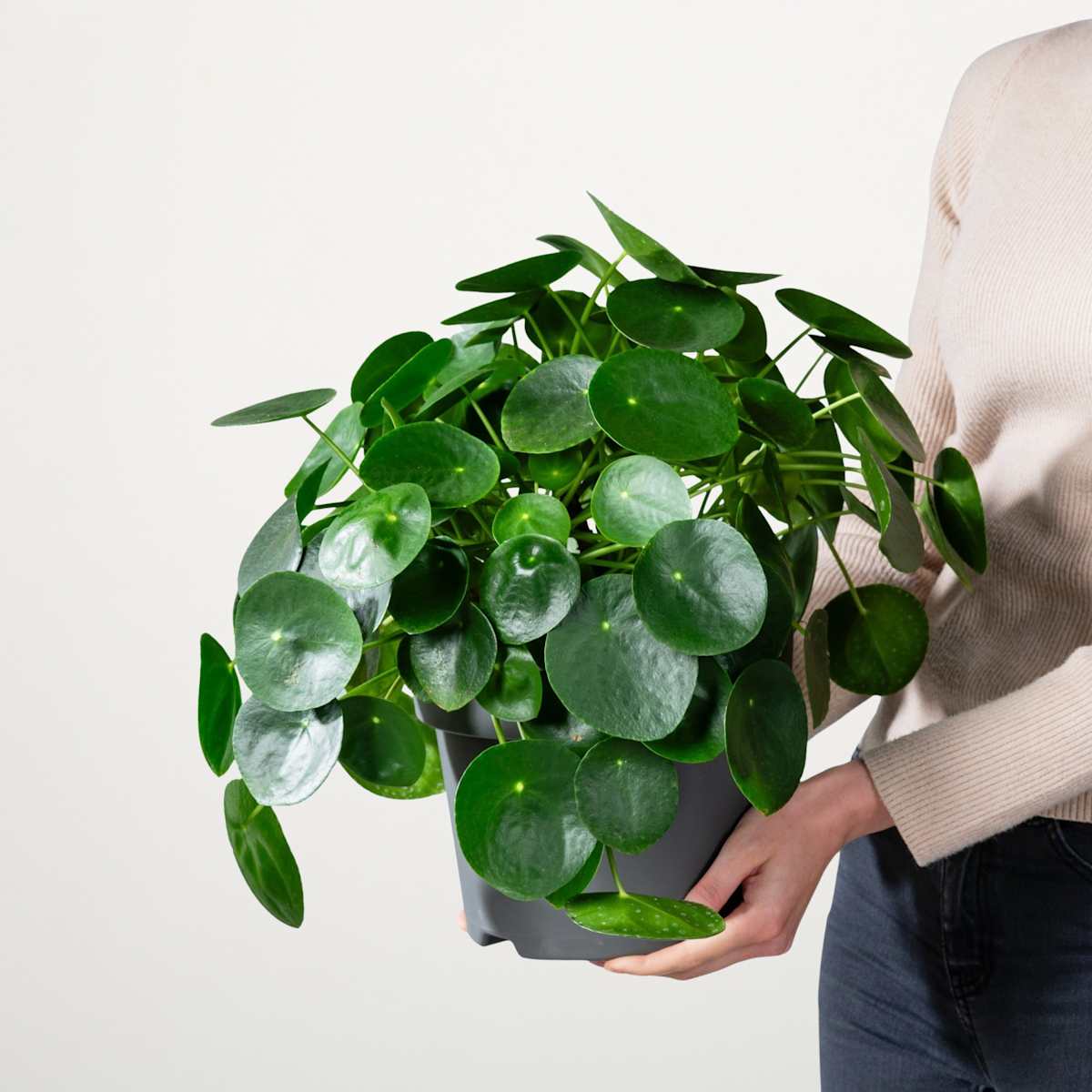 Die Ufopflanze ist eigentlich nicht außerirdisch, nur außerirdisch schön. Sie bringt ein rundes, dunkelgrünes Blatt nach dem anderen hervor und lässt mit der Zeit ein richtiges kleines Stämmchen entstehen. Sie bringt es damit immerhin auf bis zu 40 cm Höhe und 50 cm Breite. Und ab und an bringt Pilea peperomioides, wie sie sich botanisch nennt, ein kleines Ablegerchen hervor. Übrigens kann sie mit ihren Blättern die Luft reinigen – faszinierend! Also keine Sorge, dass da irgendwann so glibberiges Zeug rumkriecht. Und wo sie nach Hause telefonieren kann wird sie dich auch nicht fragen.Die Kanonierblume muss regelmäßig gegossen werden. Wenn du darauf achtest, dass die Erde immer leicht feucht ist, belohnt sie dich mit kräftigem Wuchs. Am besten kann sie das an einem halbschattigen Standort.