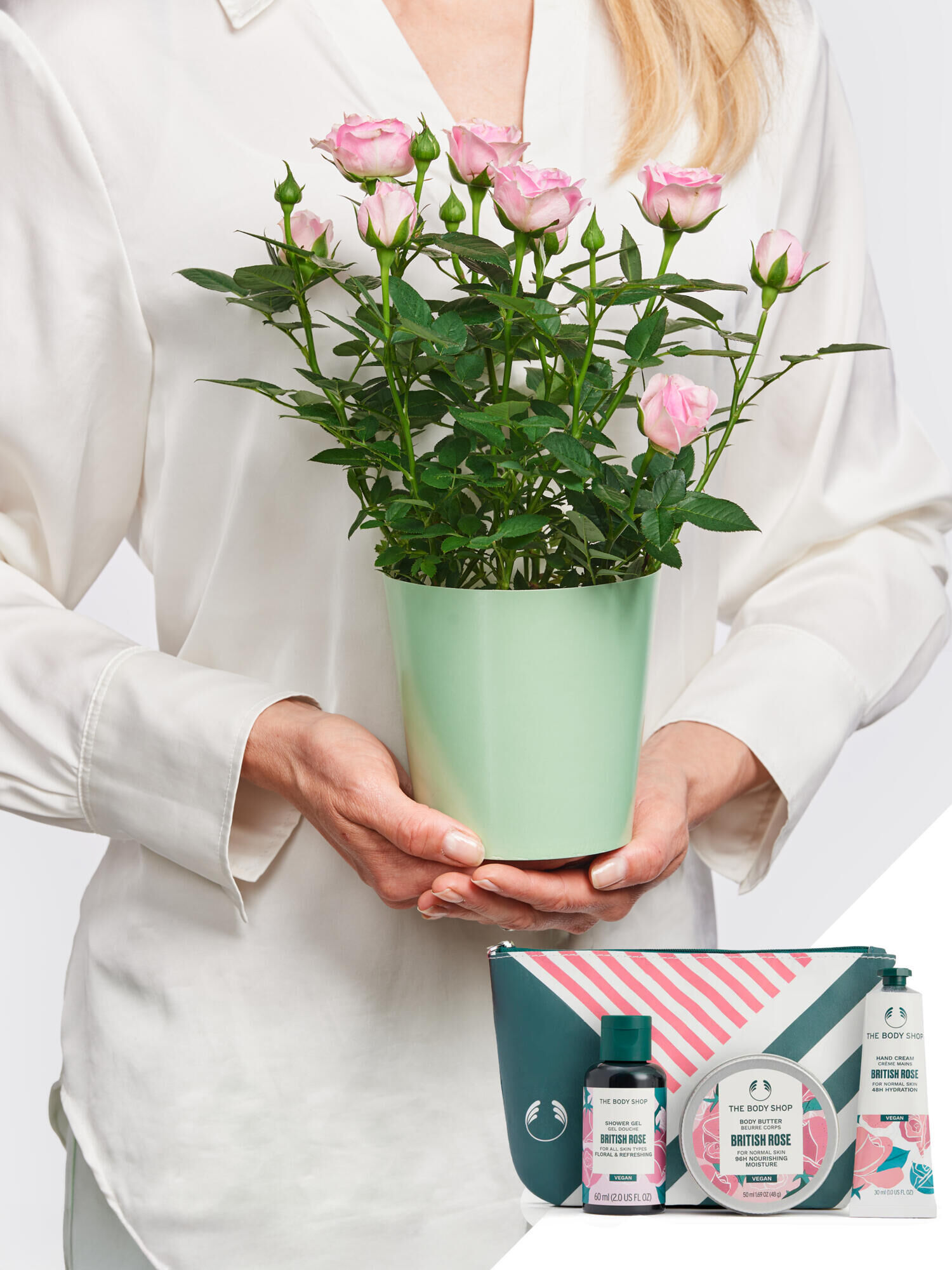 Pot Rose ‚Beauty‘ mit Body Shop Set