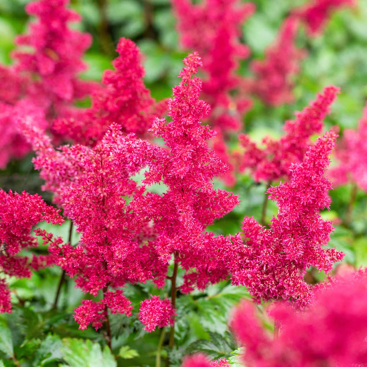 Die Prachtspiere ‚Fanal‘ hat es sich zur Aufgabe gemacht, die düsteren Bereiche deines Gartens zu verschönern. Denn Astilbe arendsii Hybrid, wie sie botanisch heißt, wächst am liebsten an halbschattigen bis schattigen Stellen. Und auch dort kommt diese bis zu 60 cm hoch und 40 cm breit werdende Staude super zur Geltung. Schon allein ihre gefiederten, dunkelgrünen Blätter sind ein schöner Anblick. Von Juli bis September kommen dann die purpurroten Blütenrispen dazu, diese leuchten fast wie Fackeln in der Dunkelheit. Du brauchst nur für immer ausreichend Wasser sorgen, dann wächst die Prachtspiere ‚Fanal‘ munter vor ich hin.
