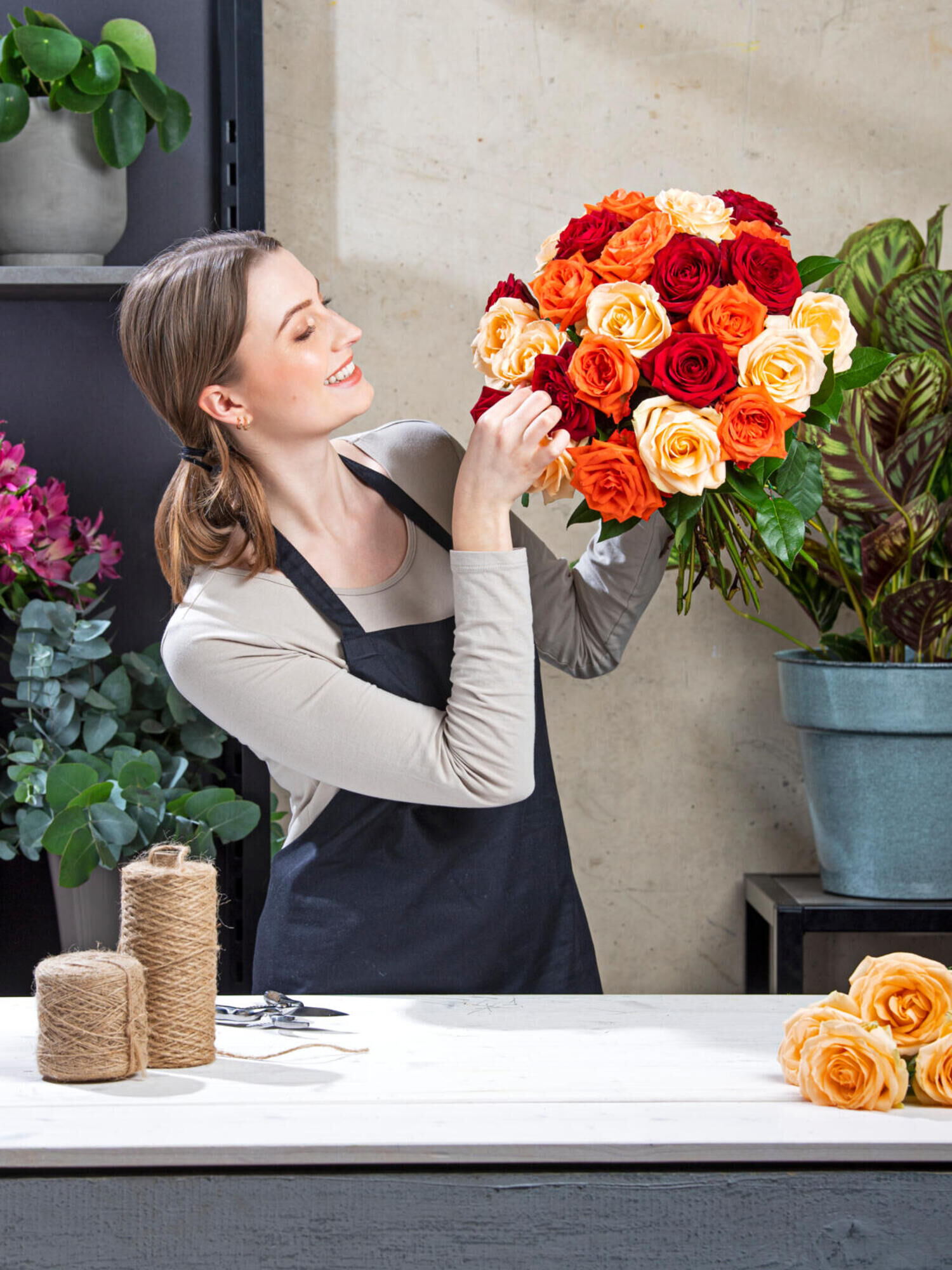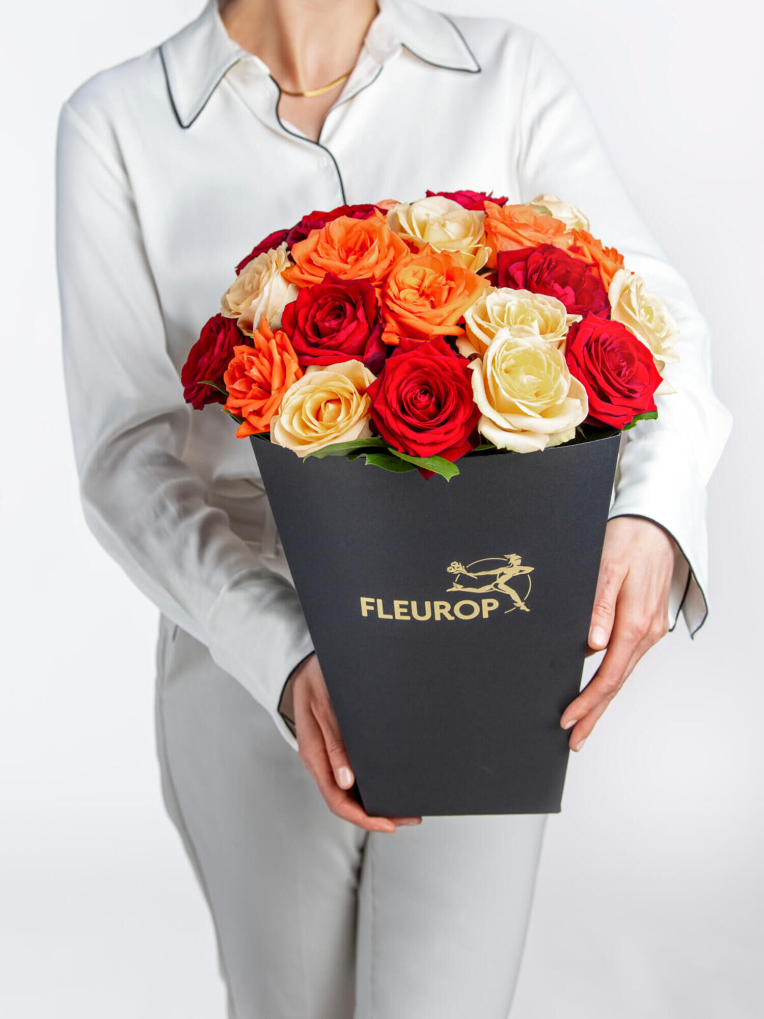 Rosenstrauß in Orange-Pfirsisch-Rot online bestellen und verschicken mit Fleurop Blumenversand. ✔ vom Floristen vor Ort geliefert | Jetzt bestellen!