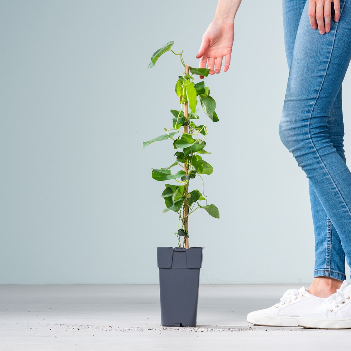 Botanisch hört sie auf den Namen Aristolochia macrophylla, das klingt schon dekorativ. Schau sie dir an, die Rote Pfeifenwinde ist doch etwas Tolles! Ihre wilden Verwandten wohnen in Nordamerika, daher ist sie auch als Amerikanische Pfeifenwinde bekannt. Hierzulande gibt es viele Einsatzmöglichkeiten für sie, zum Beispiel als Fassadenbegrünung. Von ihrer Natur her wächst sie kletternd bis zu einer Größe von 10 m und einer Breite von 6 m. Dabei legt sie auch ein gutes Tempo vor. Und wenn sie von Juni bis August blüht, wird auch klar, warum sie Pfeifenwinde heißt. Die rotbraunen Blüten sehen halt aus wie Pfeifen.Die Rote Pfeifenwinde pfeift zwar nicht auf alles, aber ausreichend Wasser und dazu ein halbschattiger bis schattiger Standort reichen ihr schon, um munter zu wachsen.