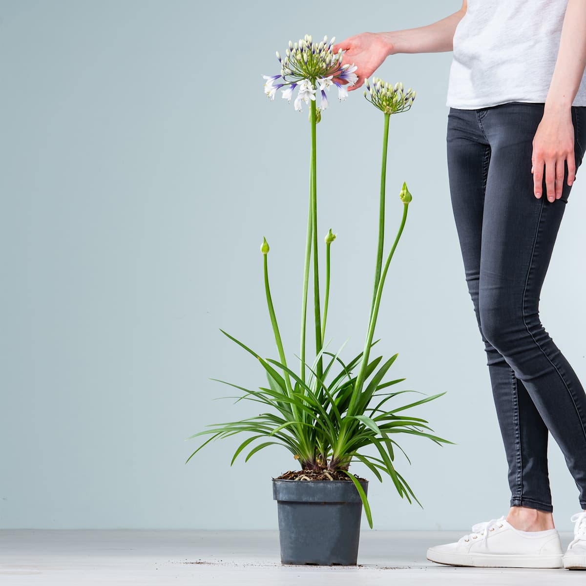 Dein eigenes, privates Feuerwerk – wie toll ist das denn? Und dazu noch rein pflanzlich und ohne Rauch und Lärm. Das geht nicht? Dann solltest du unbedingt die Schmucklilie ‚Fireworks‘ bei dir einpflanzen. Von Juni bis September begeistert dich Agapanthus africanus, so ihr botanischer Name, mit spektakulären violett-weißen Blüten. Mit 1,2 m Höhe und 1 m Breite vielleicht ‚nur‘ ein Bodenfeuerwerk, aber nicht minder faszinierend!Feuer und Wasser gehen bekanntlich nicht gut zusammen, bei der Schmucklilie ‚Fireworks‘ ist die Kombination aber unerlässlich, denn sie möchte immer genügend Wasser haben und dazu einen sonnigen Standort.