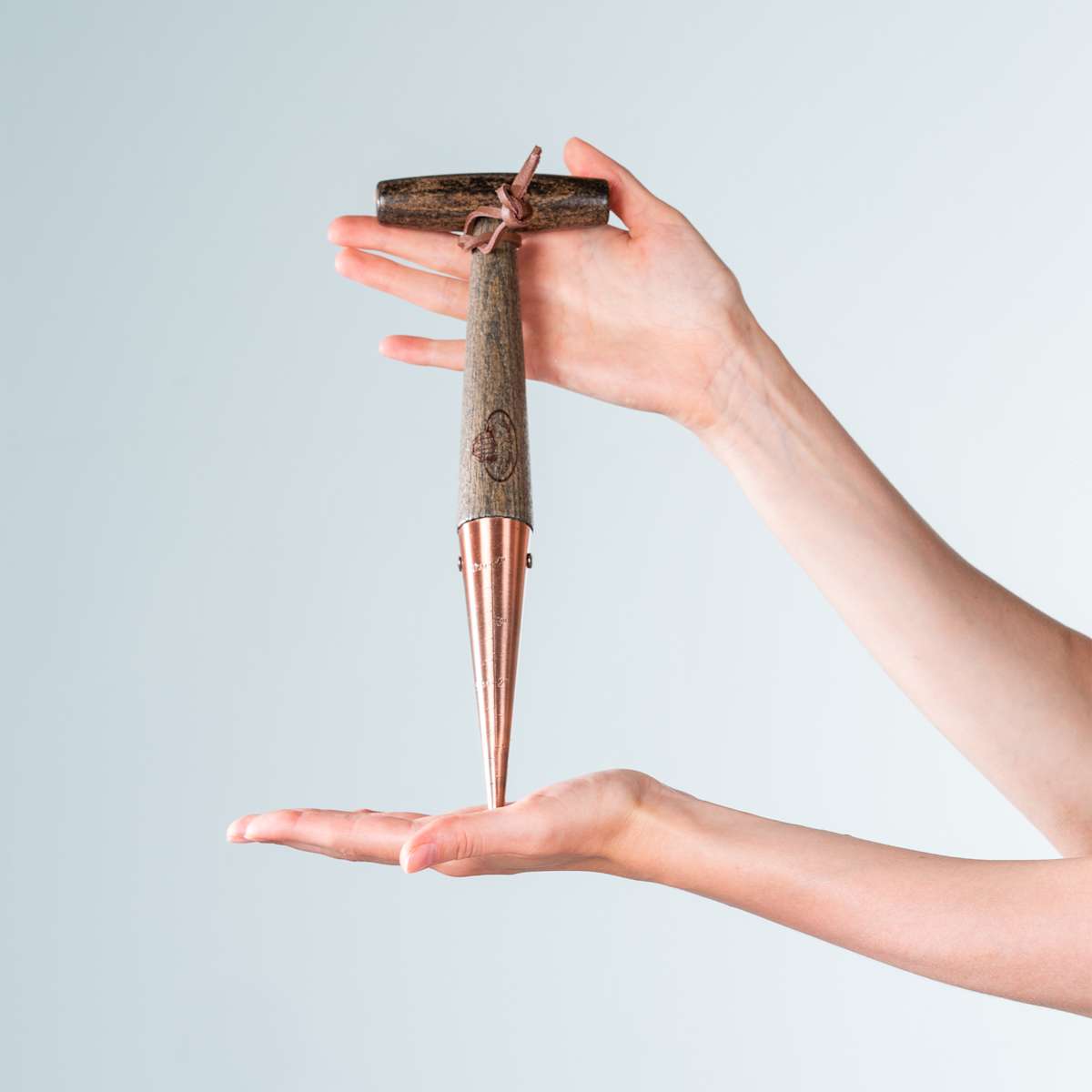 Planst du zu heiraten oder hast du es schon getan? Dann weißt du, dass in die Auswahl des Rings eine Menge Liebe fließt. Gold, Silber, Diamant? Wenn du mit deinem Garten eine engere Bindung eingehen willst, darfst du dir Gedanken machen. Ein edler Liebesbeweis ist dieses verkupferte Setzholz, das du hier bestellen kannst. Wir reden hier nicht von irgendeinem Setzholz: Dieses Prachtstück ist 27,6 cm lang und sticht mit einer Spitze von 11,3 mal 3,0 cm Löcher in genau der richtigen Größe. Und wie diese Kupferfarbe in der Sonne glänzt …! Da kann man die Flitterwochen fast schon auf der Gartenbank verbringen.