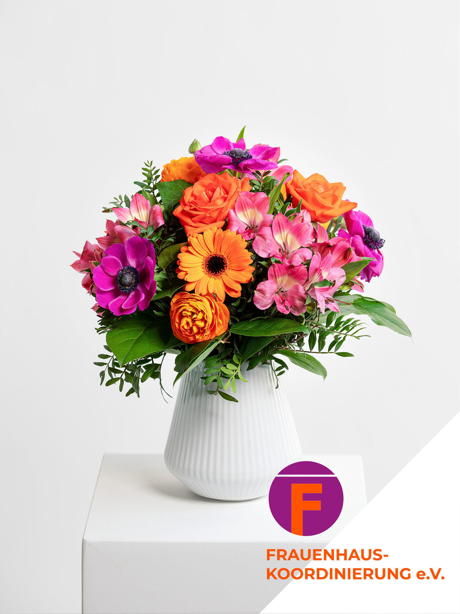 Den „She:Charity“ Strauß verschicken mit dem Fleurop Blumenversand. ➤ Jetzt online bestellen und mit Blumen Gutes tun!
