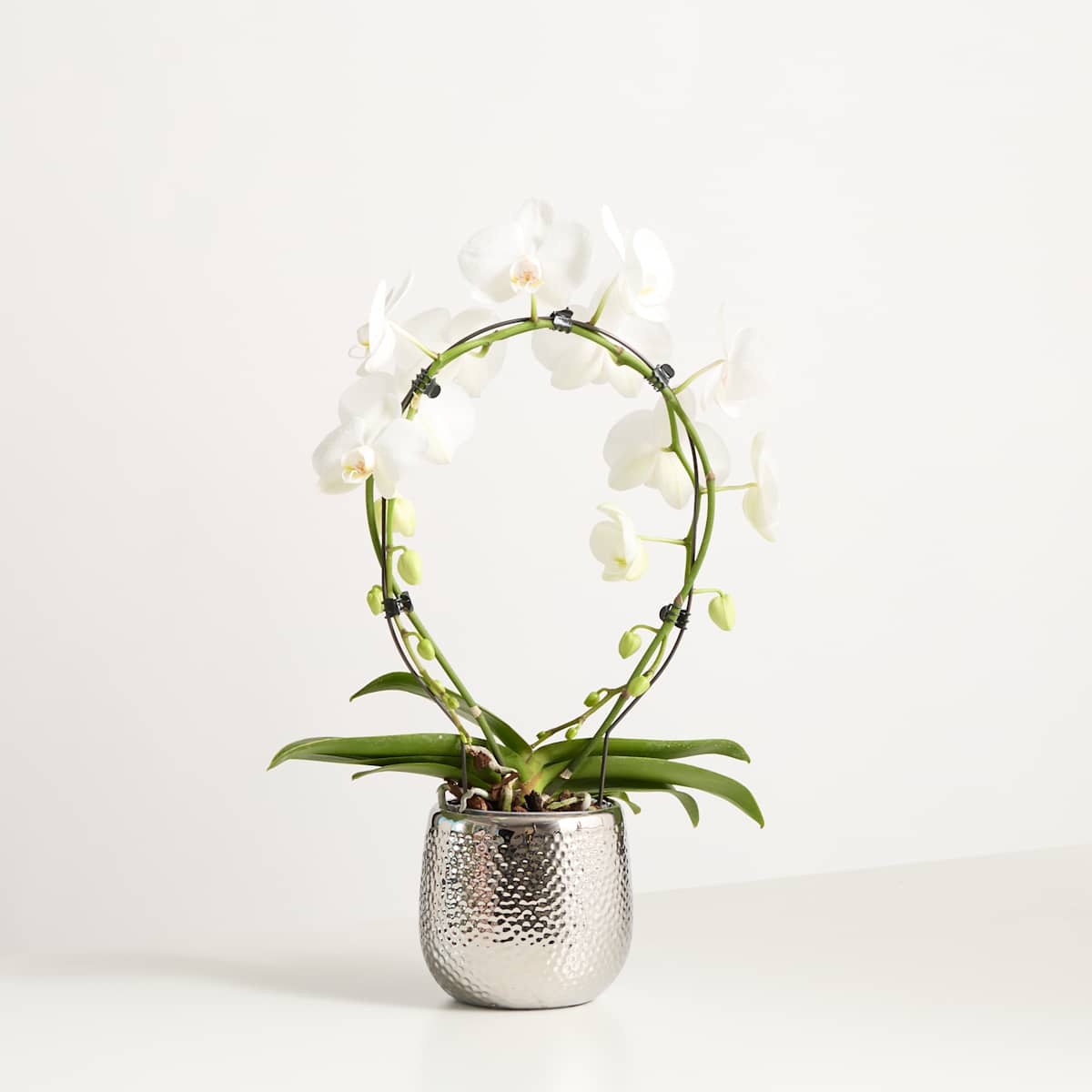 Du bist auf der Suche nach einem grünen Mitbewohner mit zauberhaften Blüten in Weiß? Dann solltest du dich für unsere Orchidee Snow White entscheiden. Die tropische Schönheit benötigt nicht viel Pflege, macht keinen Krach und widerspricht niemals. Sie hat eine Topfgröße von etwa 12 cm und erreicht dich inklusive dekorativem Übertopf in mattem Silber. Gönne ihr einen hellen Standort ohne direkte Sonneneinstrahlung und Zugluft. Regelmäßiges Gießen ja, aber unbedingt Staunässe vermeiden. Ob es deiner neuen Freundin gut geht, kannst du an ihren Wurzeln erkennen. Sind diese grau, fehlt es der Pflanze an Wasser, sind sie jedoch saftig grün, geht es deiner Orchidee sehr gut.