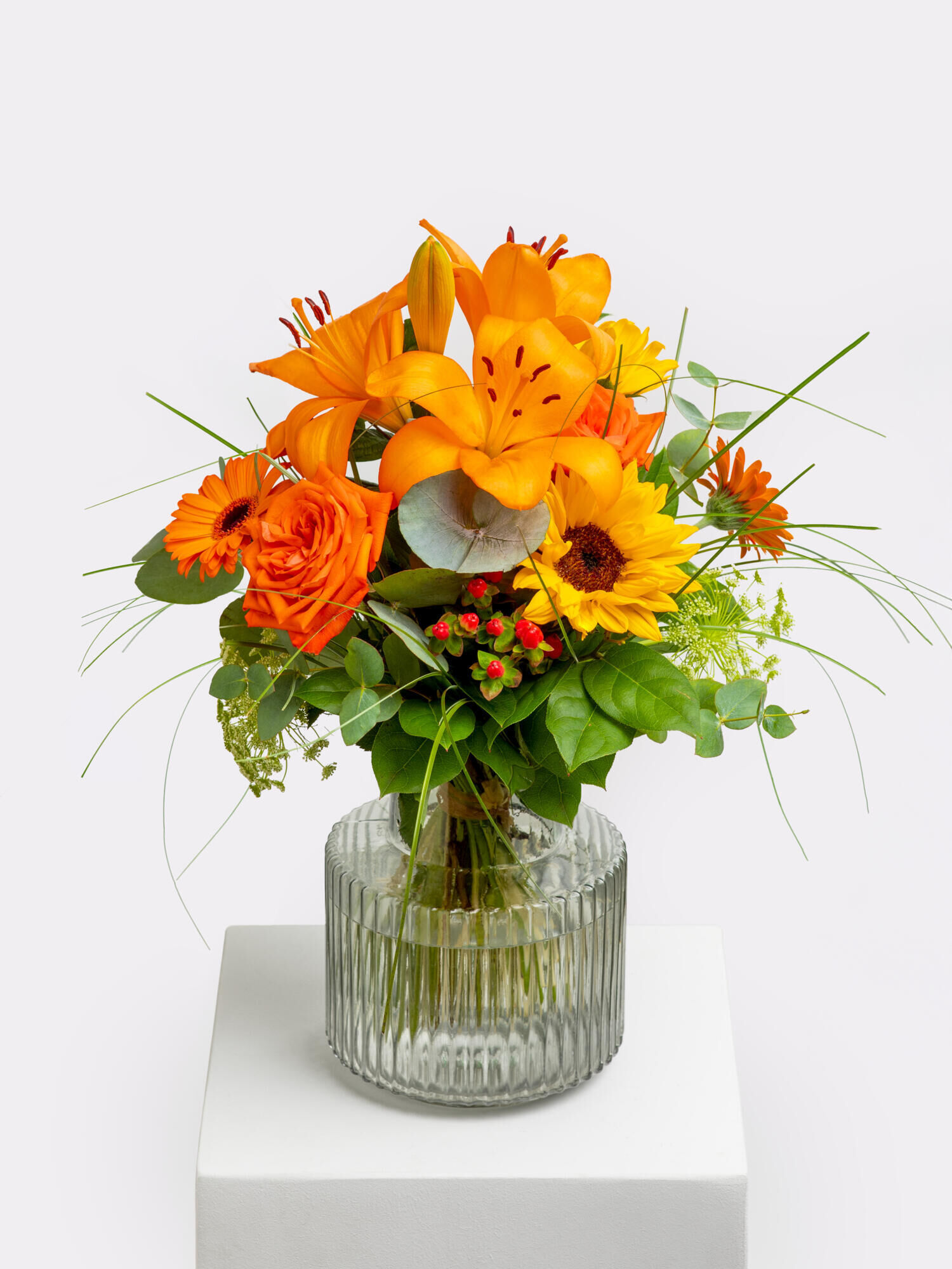 Sommerlichen Strauß mit Lilien und Sonnenblumen bestellen und liefern lassen mit Fleurop Blumenversand. ✔ mit Frische-Garantie ➤ Jetzt kaufen!