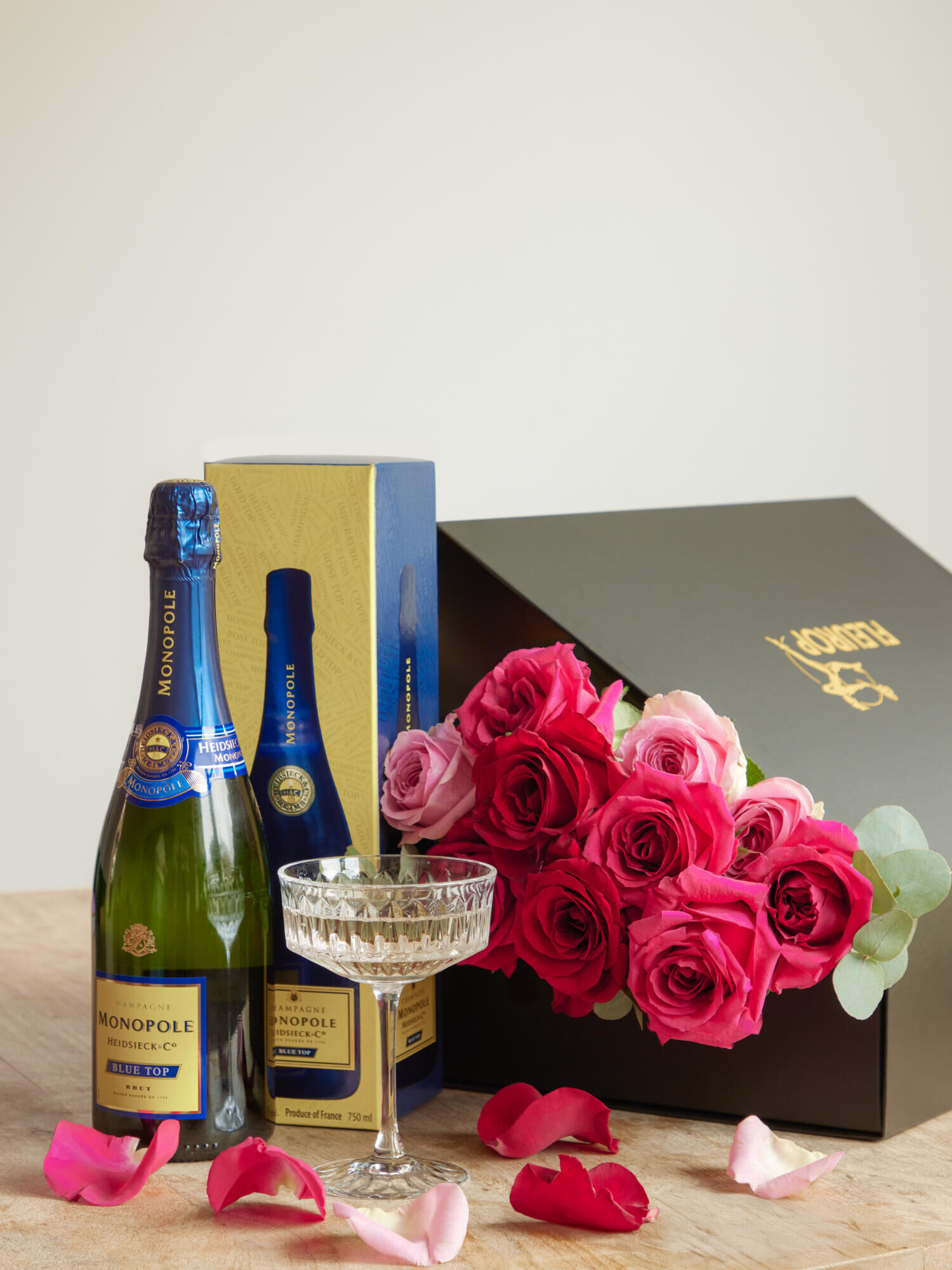 Das Geschenkset „Sparkling Glamorous“ mit Rosen und Champagner verschicken mit dem Fleurop Blumenversand. ➤ Jetzt online bestellen!