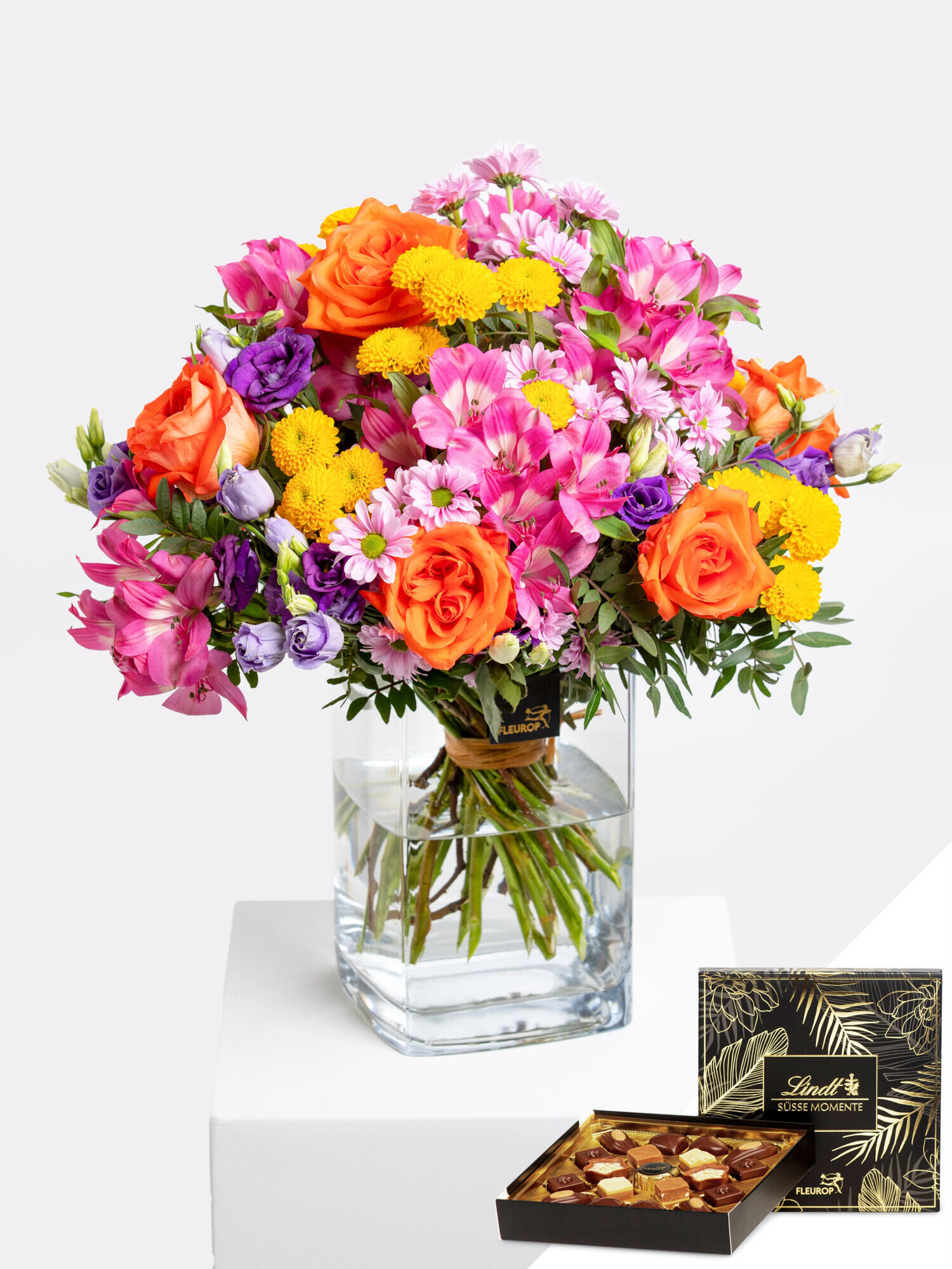 Die bunten Geburtstagsblumen „Sweet Birthday“ und Lindt-Pralinen verschicken mit dem Fleurop Blumenversand. ➤ Jetzt online bestellen und Freude verschenken!