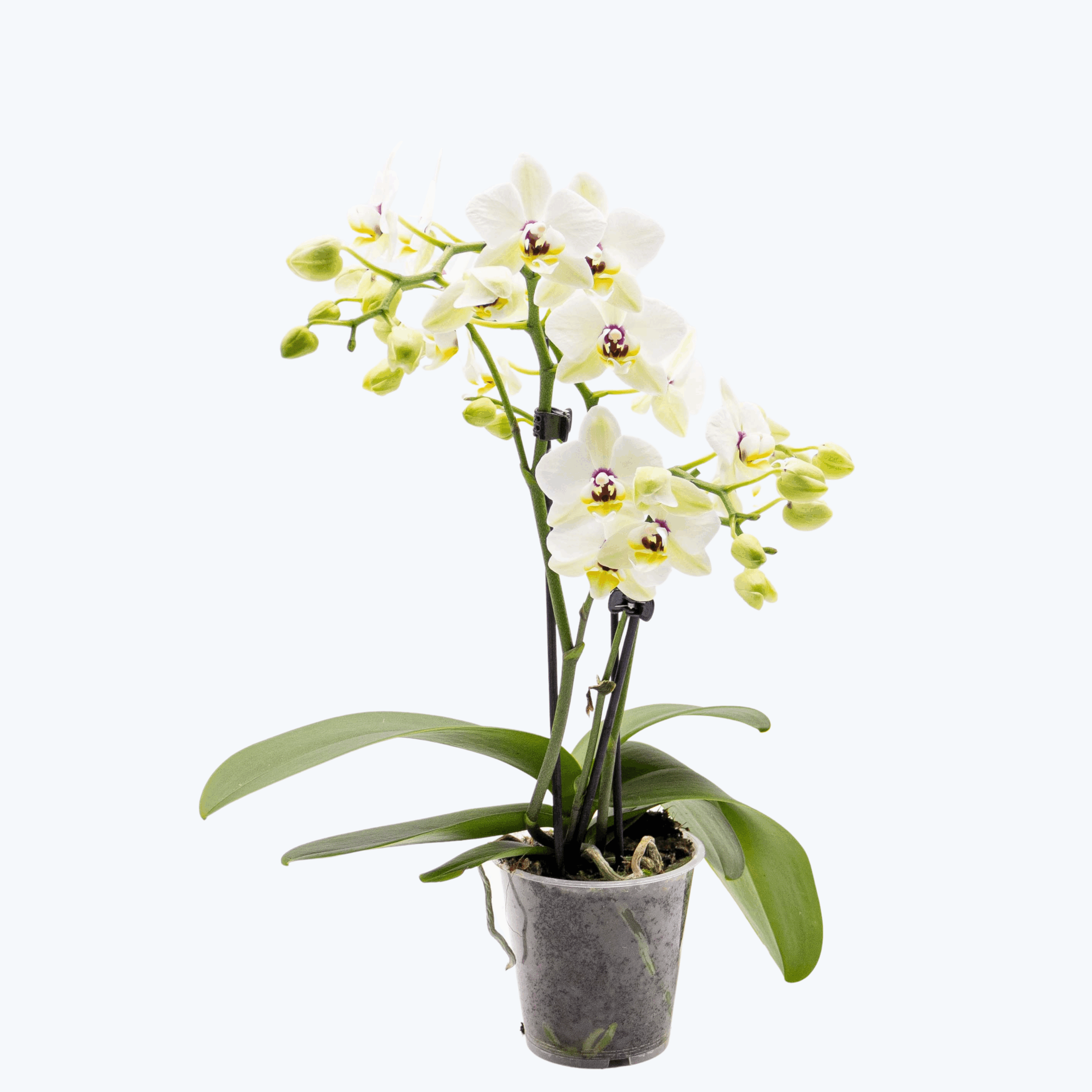 Die Table Dance Coco ist eine besondere Orchidee in unserem Sortiment. Sie zeichnet sich durch eine Vielzahl kleiner perlweißer Blüten aus, die durch das leuchtende Gelb und das intensive Violett ihrer Lippe ins Auge fallen. Diese Sorte besticht durch ihre starke Wuchsfreudigkeit und ausgezeichnete Nachblüheeigenschaften, die sie zu einer langlebigen und immer wieder blühenden Schönheit in jedem Zuhause machen. Gezüchtet, vermehrt und produziert wurde die Coco von Orchideen Hassinger in Deutschland, einem Zuchtbetrieb, der international für seine hohe Qualität und innovative Züchtungen bekannt ist. Im Überblick: 2+ Blütenrispen Topfgröße: 9 cm Größe: ca. 25 – 35 cm