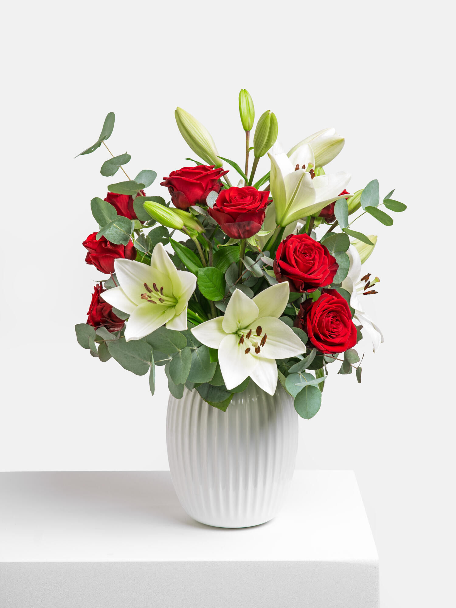 Liebesstrauß mit weißen Lilien und roten Rosen online verschicken mit Fleurop Blumenversand. ✔ vom Floristen vor Ort geliefert ➤ Jetzt bestellen!
