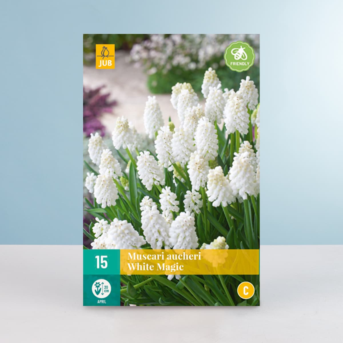 Sie hat sich extra für dich herausgeputzt und ihre Perlenkette umgelegt. Ungefähr so sehen die zierlichen Blütenstände der Traubenhyazinthe ‚White Magic‘ aus, wenn sie zwischen April und Mai erscheinen. Ok Perlenkette stimmt nicht ganz, aber die kleinen weißen Blüten haben wirklich etwas von Perlen. Von ihrer Natur her werden diese Vertreterinnen der Art Muscari armeniacum etwa 20 cm hoch. Und sie sind nicht nur in Gartenbeeten ein Hingucker, sondern kommen auch in Kübeln auf Balkon oder Terrasse sehr gut zur Geltung. Du kannst die 15 Zwiebeln, die du erhältst, also nach Lust und Laune in deinem grünen Reich verteilen. Wichtig ist nur, dass die Erde durchlässig ist, der Standort sonnig bis halbschattig und es immer genügend Waser gibt.