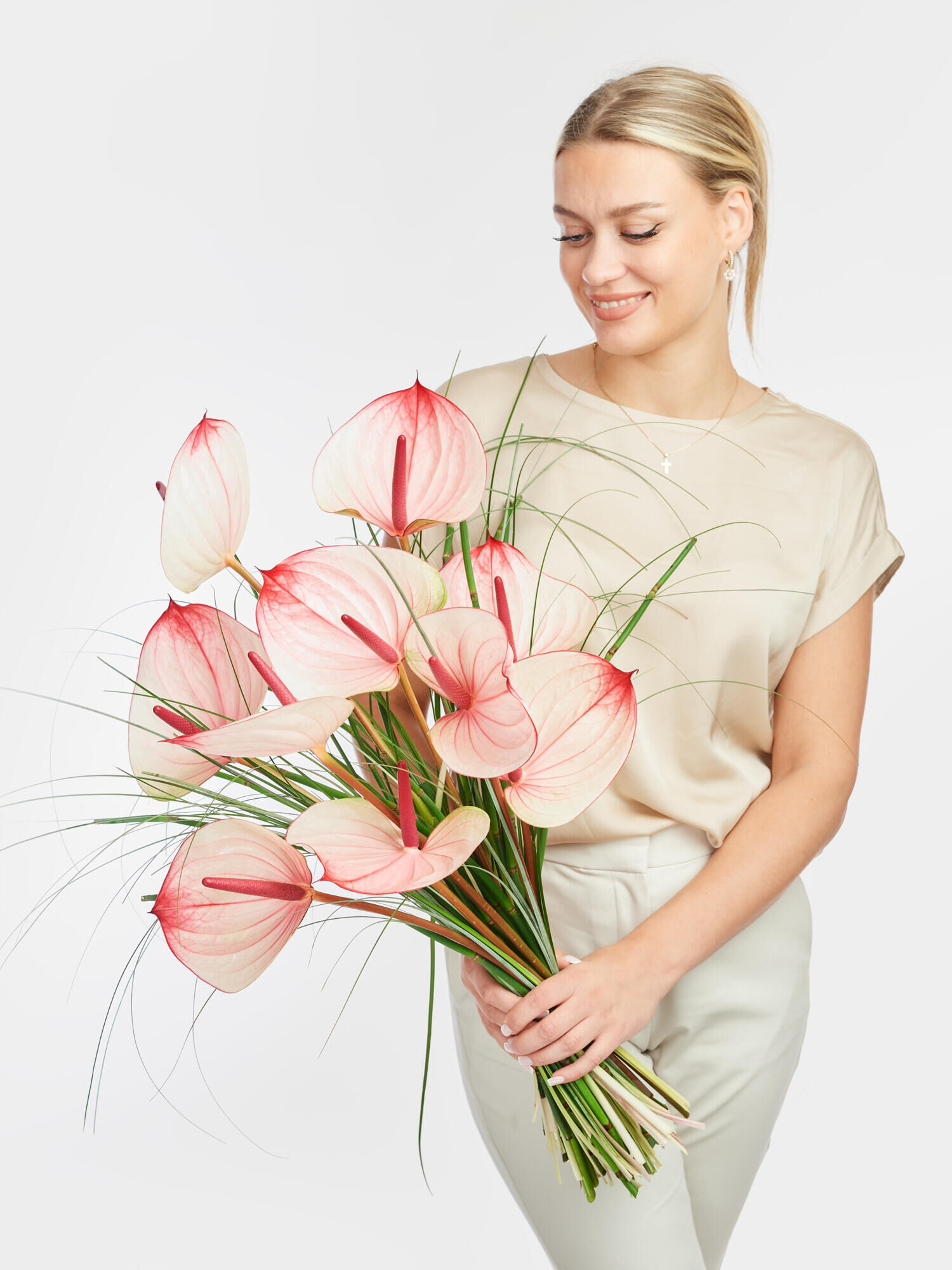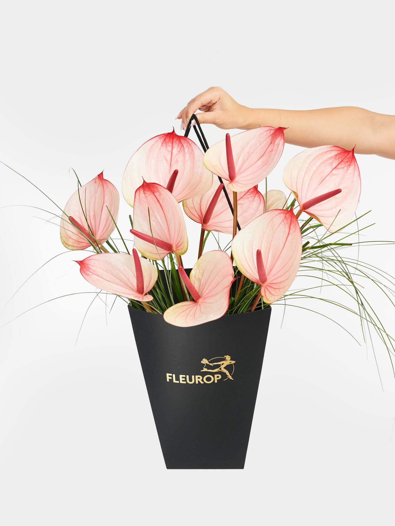 Den rosafarbenen Anthurienstrauß „Traumzauberwelten“ verschicken mit dem Fleurop Blumenversand. ✔ Mit Frische-Garantie! ➤ Jetzt online bestellen!
