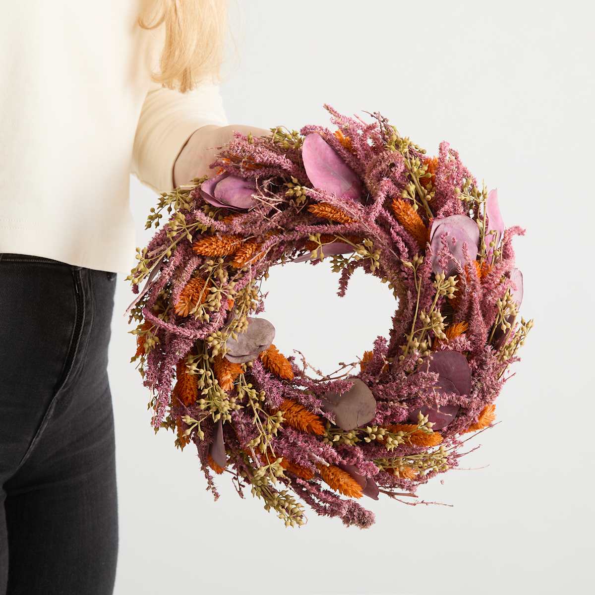 Entdecke die zeitlose Eleganz des Trockenblumenkranzes Flieder, dein neues Must-Have für ein stilvolles Zuhause! Mit einem Durchmesser von 25 cm ist dieser handgefertigte Kranz aus sorgfältig ausgewählten Trockenblumen ein wahres Kunstwerk der Natur. Jede Blüte und jeder Zweig wurde behutsam arrangiert, um eine harmonische Komposition zu schaffen, die in jedem Raum strahlt. Warum solltest du dich für unseren Trockenblumenkranz Flieder entscheiden? Erstens, seine Langlebigkeit: Im Gegensatz zu frischen Blumen verwelkt dieser Kranz nie und behält dauerhaft seine prächtige Farbe. Zweitens, seine Vielseitigkeit: Ob als Mittelpunkt deines Esstisches, als elegante Wanddekoration oder als Blickfang auf deiner Tür, dieser Kranz fügt überall eine Note von natürlicher Schönheit hinzu. Ideal für trendbewusste Menschen, die Wert auf Qualität und Ästhetik legen, ist der Trockenblumenkranz Flieder nicht nur ein Dekorationsobjekt, sondern ein Statement für deinen persönlichen Stil. Verleihe deinem Zuhause eine frische Note mit diesem exquisiten Trockenblumenkranz und lass dich von seiner natürlichen Schönheit verzaubern.