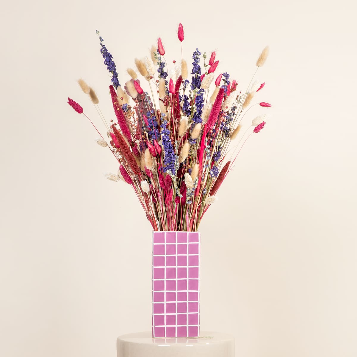 Du magst es üppig und es soll zugleich schön luftig und fluffig sein? Dann ist unser Trockenblumenstrauß Bohemian Beauty XL sicher das Richtige für dich. In dieser modernen Kreation tummeln sich Phalaris, Laurus, Rittersport, Babala, Eukalyptus und Flachs. So entsteht ein Strauß in angesagten Natur-, Lila-, Blau- und Beerentönen, der nicht nur als Tischdekoration eine gute Figur macht. Hierbei handelt es sich um ein Naturprodukt. Daher gleicht kein Strauß dem anderen. Ist die Stiellänge mit 55 cm zu lang, kannst du sie individuell auf die gewünschte Länge kürzen. Trockenblumen bleiben in der Vase (nicht im Lieferumfang enthalten) ewig schön und benötigen keine weitere Pflege.