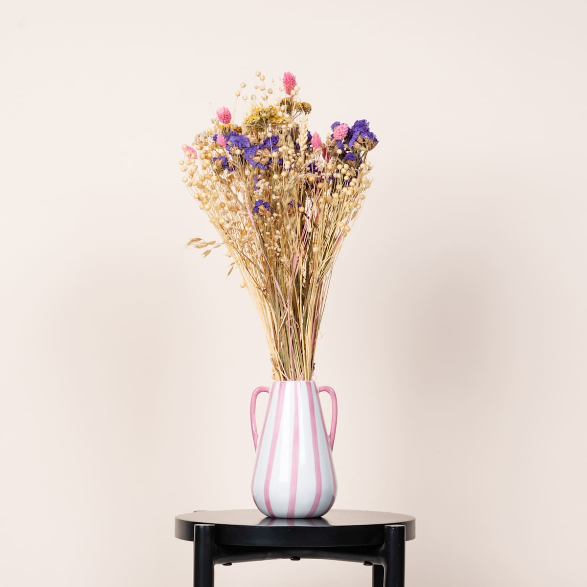 Gelb ist eine wunderschöne, lebendige Farbe – wenn die ersten gelben Blumen blühen, wissen wir, dass die warmen Tage zurückkehren. In einem Trockenblumenstrauß behalten die Blüten ihren frühlingshaften, gelben Farbton für alle Zeit. Nur lange, intensive Sonneneinstrahlung kann das Gelb verblassen lassen. Abgesehen davon benötigt ein Trockenstrauß keine Pflege – stell ihn mit seinen 60 cm langen Stielen in eine Vase und erfreue dich für immer an seinem Anblick. Oder verschenke den gelben Trockenblumenstrauß an einen lieben Menschen. Eingewickelt in braunes Papier und gebunden mit einem Sisalband, lässt sich der etwa 150 Gramm schwere Strauß feierlich überreichen. Greif zu, und sichere dir diesen besonderen Trockenstrauß!