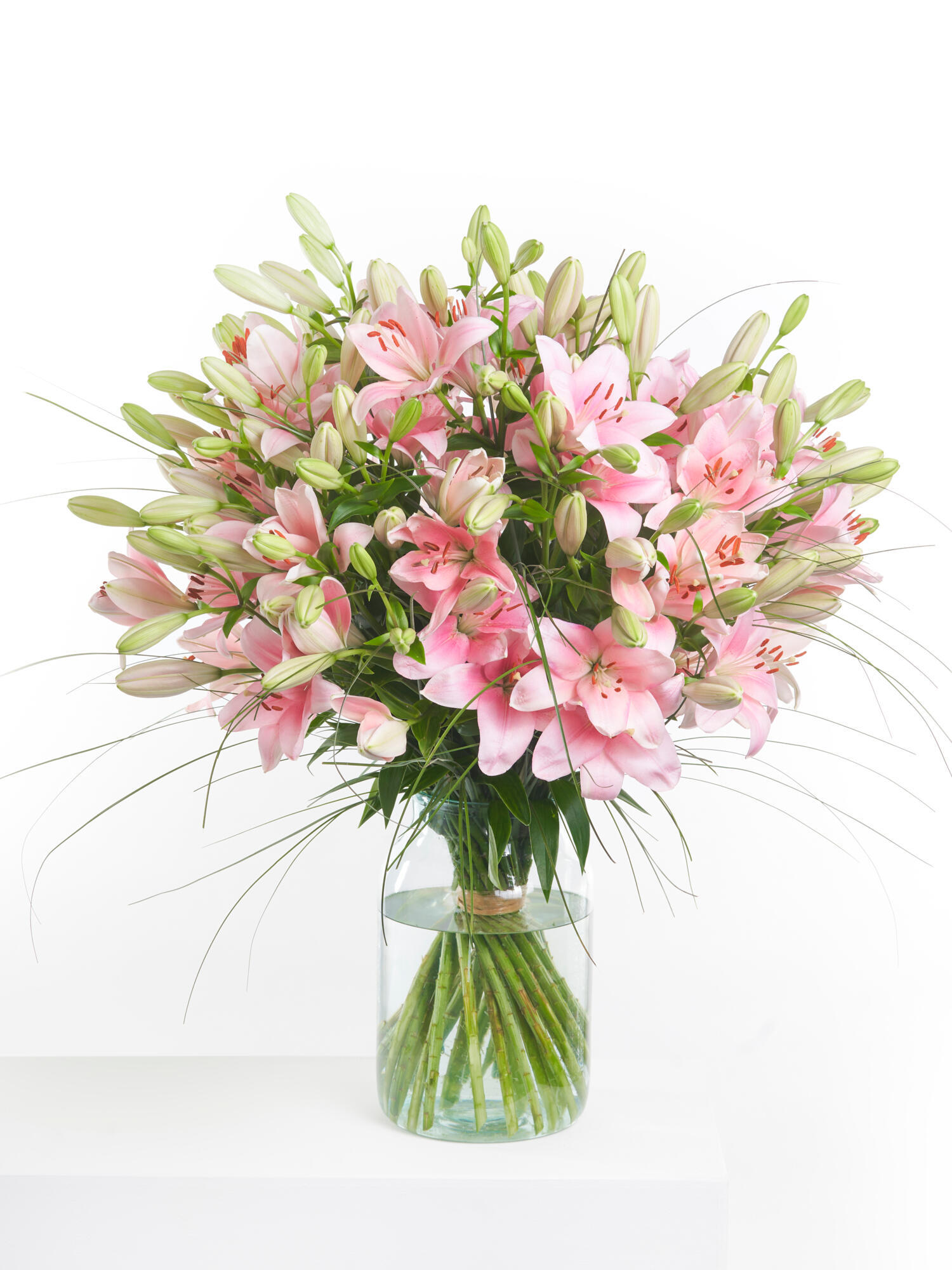 Verlieren Sie sich in der Zärtlichkeit dieses extravaganten Lilienstraußes. Die zartrosa-farbenen Lilien, ein Symbol für Reinheit und Liebe, stehen im Mittelpunkt dieses Arrangements. Ergänzt werden sie von etwas Bärgras, das dem Strauß eine natürliche Leichtigkeit verleiht. Die geschlossenen Lilien werden in den nächsten Tagen ihre Blüten öffnen und den Raum mit einem betörenden Duft erfüllen. Ein perfektes Geschenk für alle romantischen Seelen. Intensiv duftender Strauß mit Lilien und Bärgras Liebevoll von Hand gebunden und von Natur aus einzigartig Hinweis: Knospige Lilien benötigen bis zu 5 Tage bis sie vollständig aufgeblüht sind