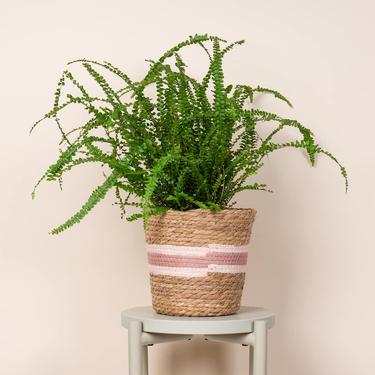 Jeder deiner neuen Pflanzkörbe weiß genau, dass er zu dir gehört. Er zeichnet sich durch seinen wundervoll prägnanten Papierstreifen um den eigenen Pflanzkorb-Bauch aus. Dieses pinke Erkennungsmerkmal sagt mehr als „Ich bin ein natürlich schöner Übertopf!“ Es macht deutlich, dass ein 20 cm hohes und 21,5 cm breites Gefäß aus Seegras von nun an in jeder Lebenslage deinen grünblättrigen Lieblingen all die Liebe und Obhut schenken wird, die sie brauchen und verdienen. Außerdem lockt der zuversichtliche Streifen immer mehr Gleichgesinnte mit ambitionierter Mission aus unserem Online-Bestell-Shop zu dir nach Hause. Passend für einen 20 cm Kulturtopf.