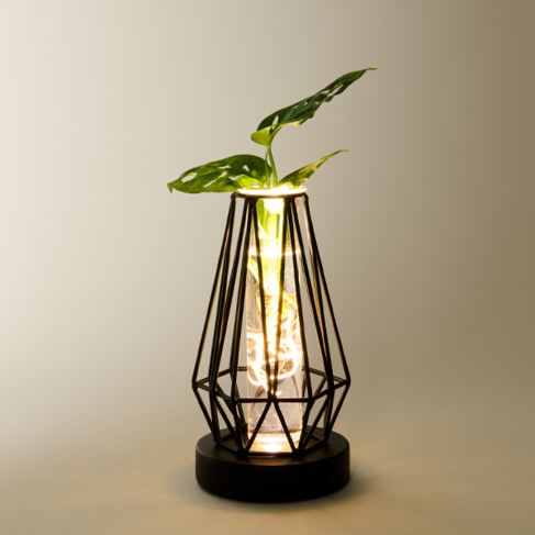 Die Kultpflanze Monstera als Water Plant in einem modernen Gestell aus Metall und Glas mit integriertem LED-Licht. Unsere Monstera steht im Wasser und ist ein absolut originelles Dekorationselement denn Zimmerpflanzen im Wasser sind der Wohntrend schlechthin. Und zusätzliche noch in einem ausgefallenen Gestell mit eigener Belichtung – was will man mehr. Eine solche Hydrokultur sieht nicht nur toll aus sondern lässt die Wurzeln der Monstera auch besser atmen wodurch die Pflanze pflegeleicht in Wohnräumen zu halten ist. Wer Spaß an Blumen und Zimmerpflanzen in tollen Vasen hat wird diese Waterplant lieben. Die Pflanze ist mit Glas ca. 30 cm hoch.Hinweis: Das Gefäß wird mit Batterien (AA) betrieben.Die Pflanze ist giftig. Hersteller:FloraPrima GmbHDidderser Str. 2838176 Wendeburginfo@floraprima.de