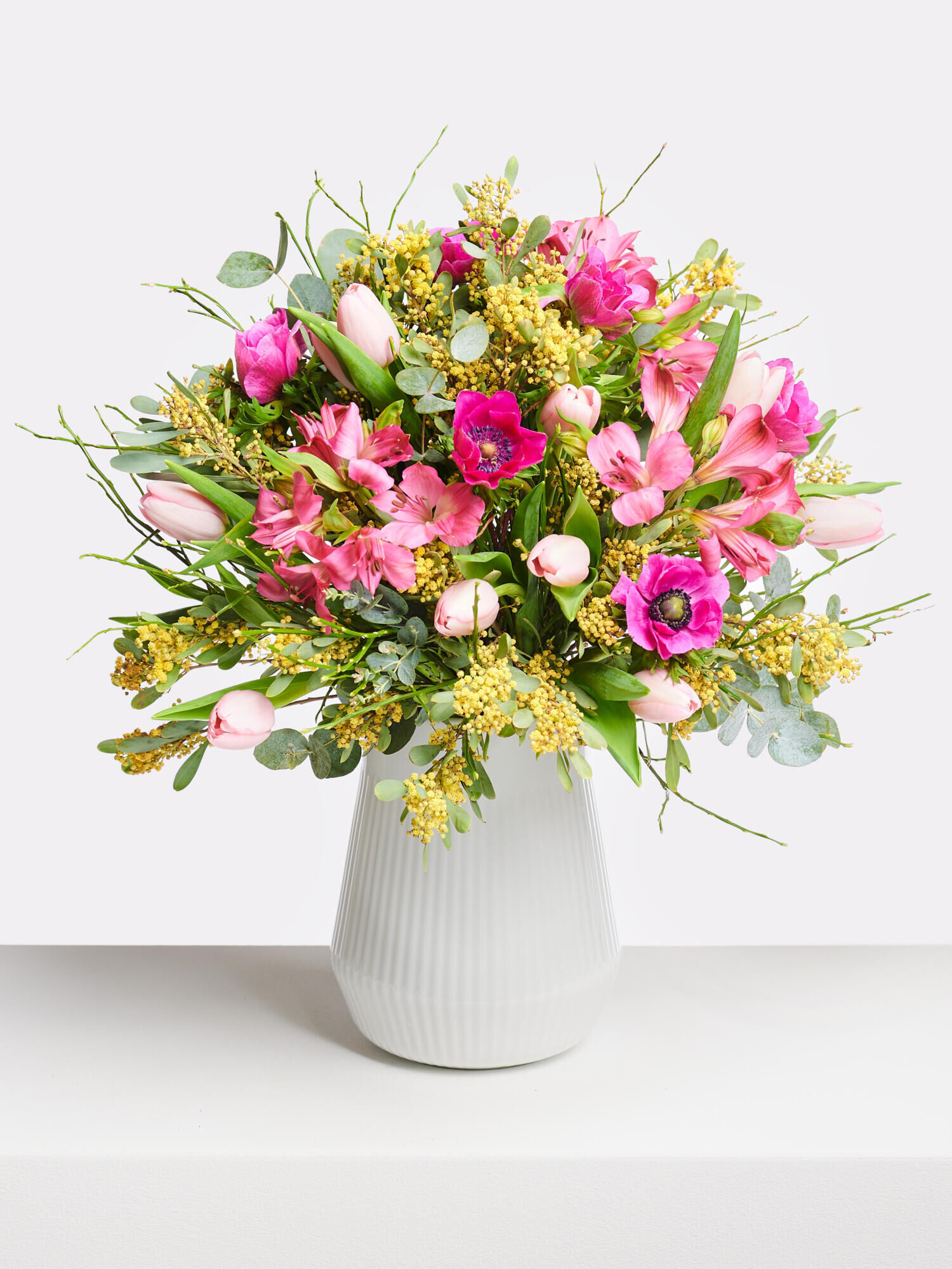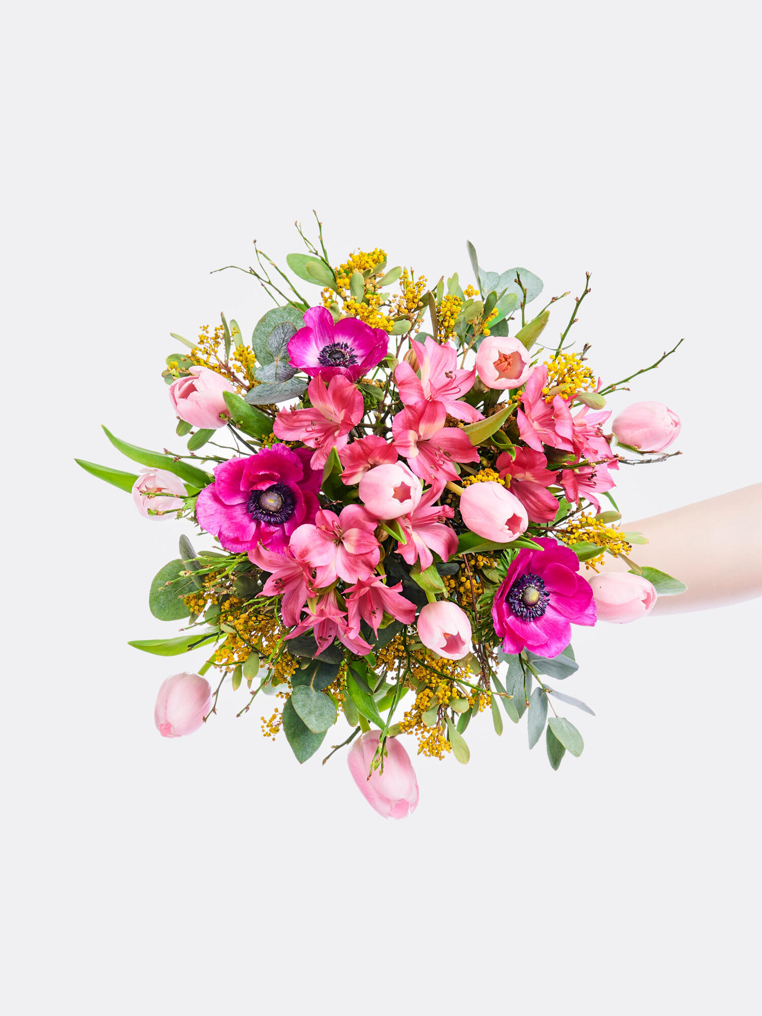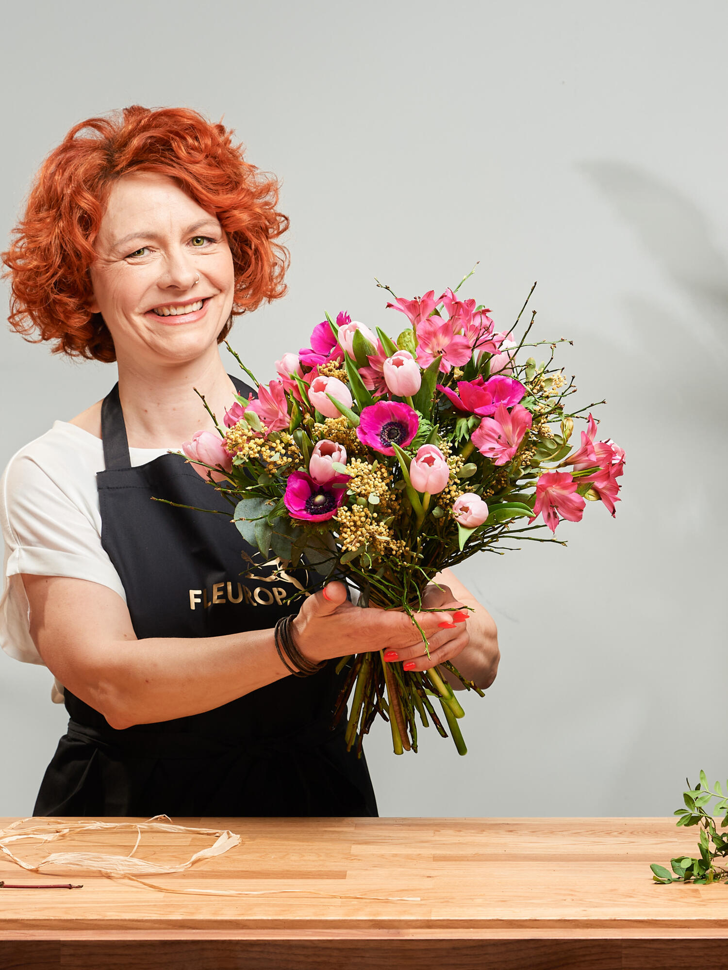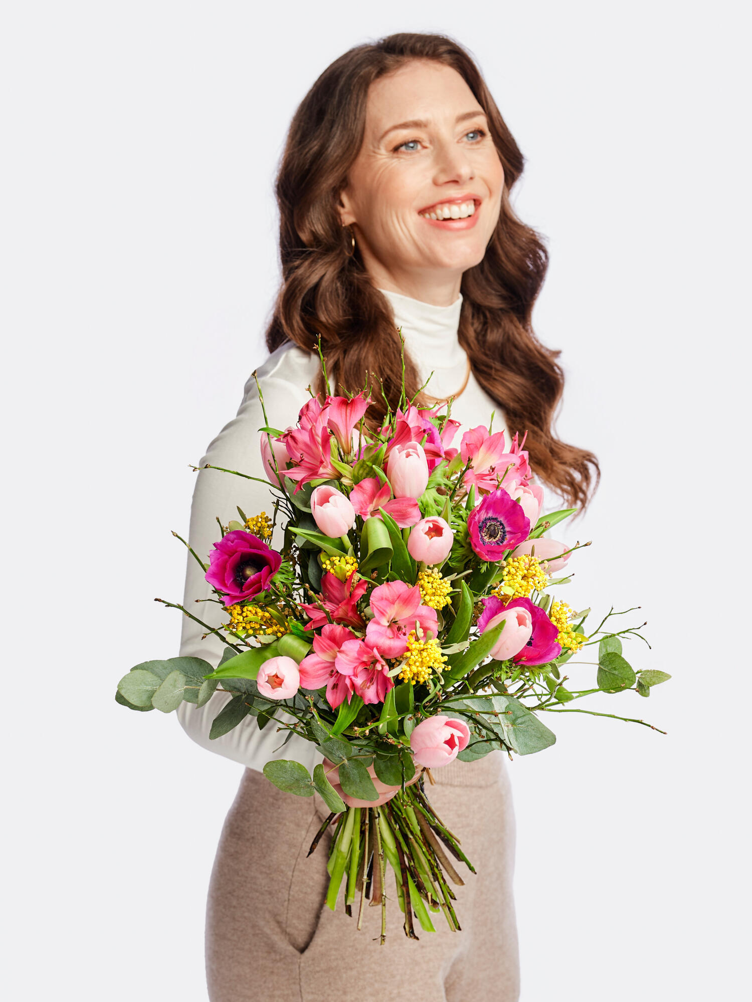 Den rosafarbenen Blumenstrauß „Visionärin“ verschicken mit dem Fleurop Blumenversand. ➤ Jetzt online bestellen und am Frauentag überraschen!