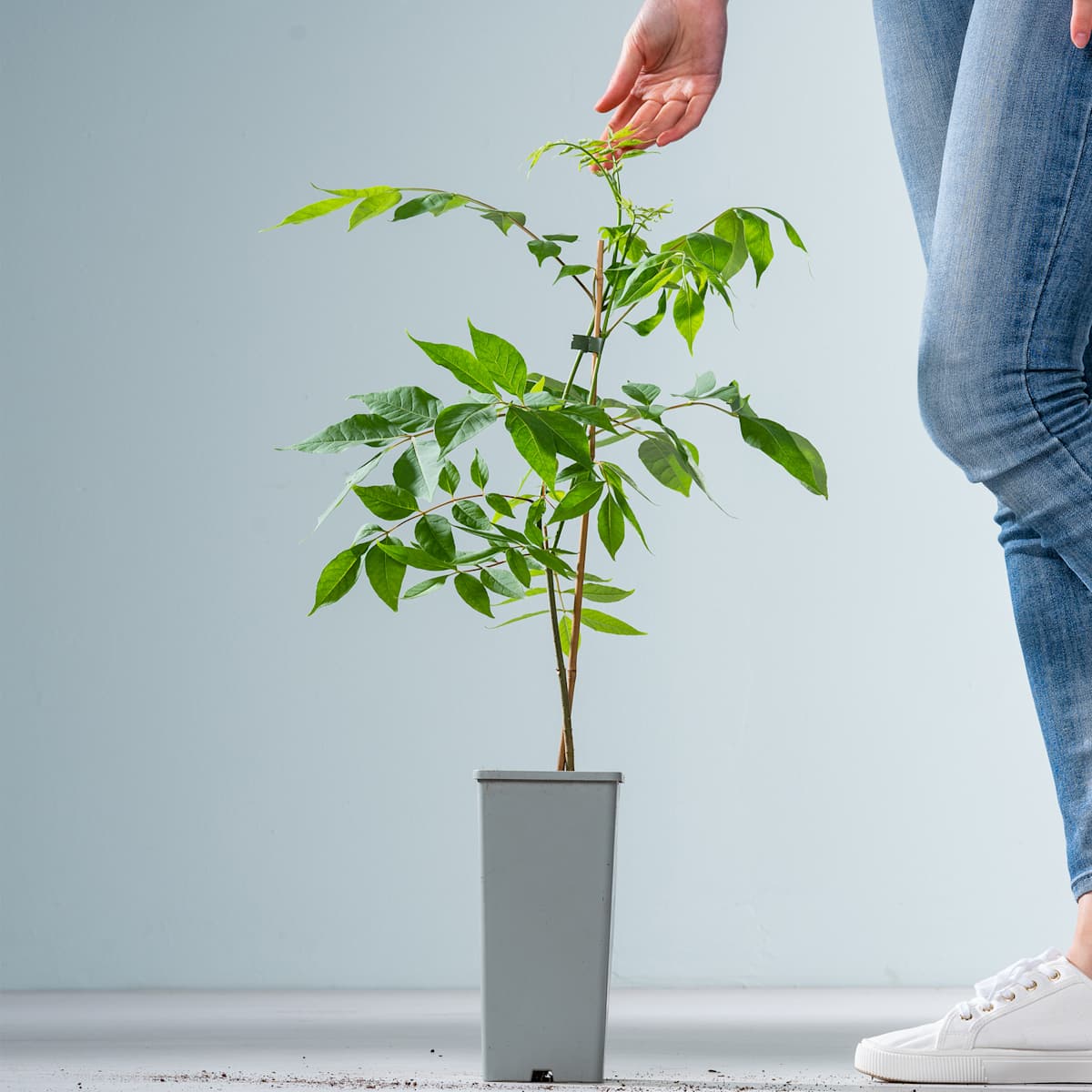 Lass dich jetzt bloß nicht von ihrem Namen abschrecken! Du kannst dich der Weißen Stinkesche ohne Atemmaske nähern, wenn sie von Juli bis August ihre unzähligen, cremeweißen Blüten trägt. Bienen und andere Insekten finden in ihnen übrigens ein überbordendes Büffet – noch ein Grund Euodia hupehensis, so der botanische Name, zu pflanzen. Dieses sommergrüne Gehölz wächst von seiner Natur her rundlich- breit und wird bis zu 7 m hoch und 5 m breit. Nur die glänzenden, ledrigen Blätter müffeln etwas, das vergisst du aber schnell, wenn sie sich im Herbst in schönes Gelb färben.Die Weiße Stinkesche ist echt beeindruckend, aber ganz pflegeleicht. Ausreichend Wasser, dazu ein sonniger Standort, mehr braucht sie nicht um munter zu wachsen.