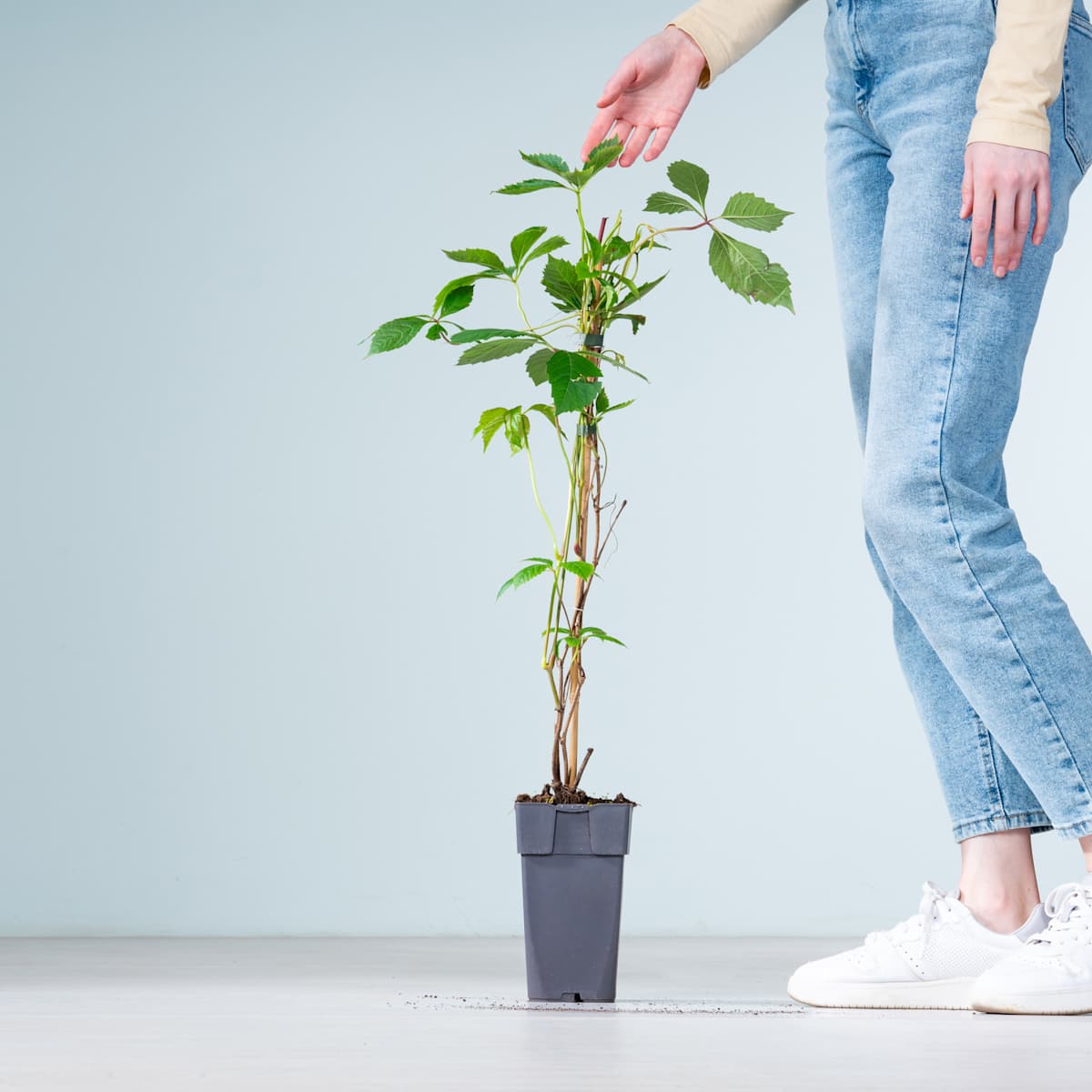 Die Selbstkletternde Jungfernrebe will hoch hinaus. Ja, es dürfen schon mal 20 m Höhe und 10 m Breite sein – und das alles ohne Netz und doppelten Boden. Aber eine Rankhilfe wäre dann doch in Ordnung. So kannst du diesen Wilden Wein auch gleich etwas im Zaum halten. Doch bei all seinen Kletterkünsten ist Parthenocissus, wie er botanisch heißt, doch auch wunderschön. Von Juni bis August schmückt er sich mit cremeweißen Blüten. Und auch sonst ist er mit seinen gefingerten, dunkelgrünen Blättern eine gute Fassadenbegrünung, die im Herbst sogar auffällig scharlachrot umfärbt.Die Selbstkletternde Jungfernrebe macht dir nicht viel Arbeit. Ausreichend Wasser, dazu ein sonniger bis schattiger Standort, mehr braucht sie nicht, um sich in atemberaubende Höhen zu erheben.
