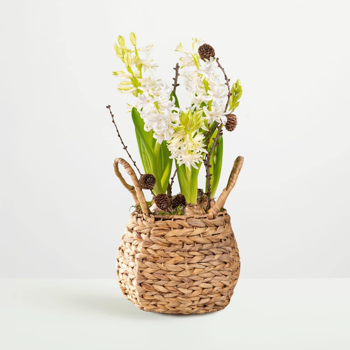 Wie wäre es, wenn du deine Liebsten im tristen Wintergrau mit einem duftenden Pflanzenarrangement überraschst? Unsere prachtvollen Hyazinthen Winter Blossom sind eine echte Augenweide. Sie befinden sich in einem dekorativen Korb und können sowohl im Innenraum als auch im Outdoorbereich platziert werden. Schon nach wenigen Tagen öffnen sich zahlreiche glockenförmige Blüten, die an einem kräftigen Stängel sitzen. Die beliebten Zwiebelblumen begeistern jedoch nicht nur mit ihrer Blütenpracht, sondern auch mit ihrem betörenden Duft. Hyazinthen sind frostfest und können später direkt in den Garten gepflanzt werden. So kannst du dich auch im nächsten Frühjahr an ihrer Schönheit erfreuen. Dieses Geschenk bereitet über viele Jahre hinweg Freude!