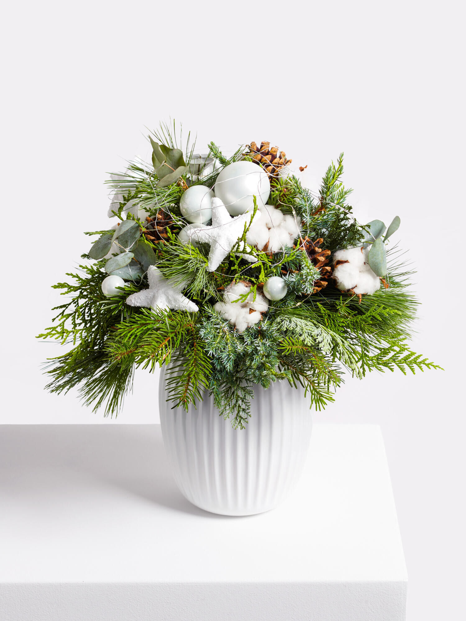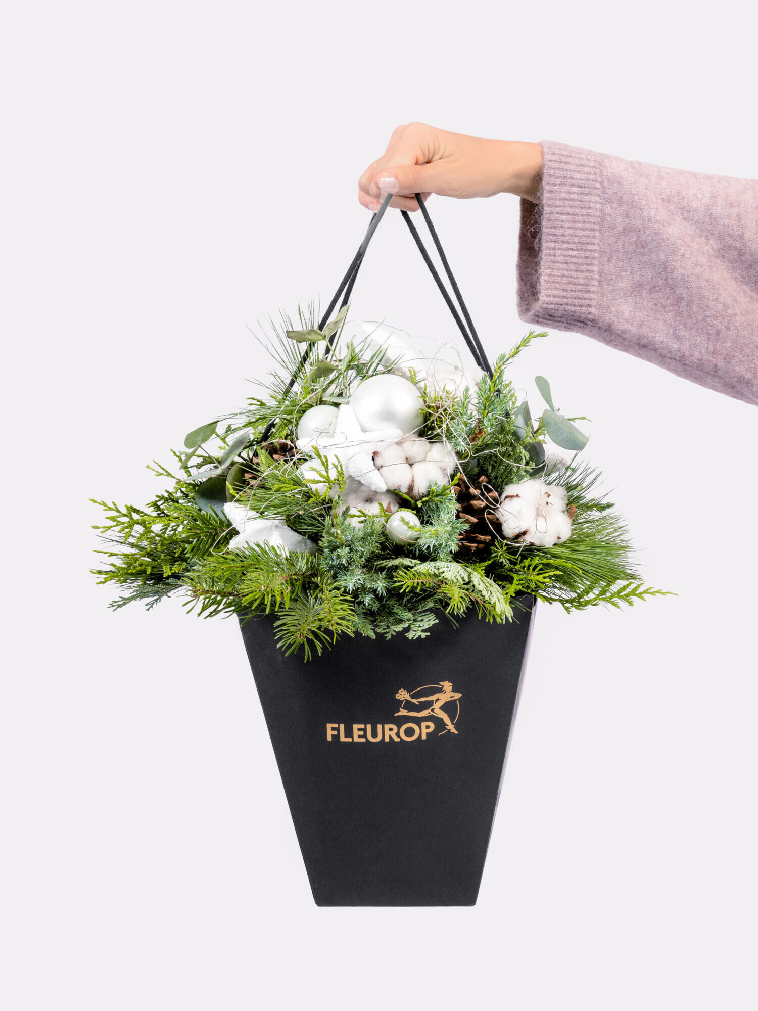 Den weihnachtlichen Strauß „Winterzauber“ in Weiß-Grün verschicken mit dem Fleurop Blumenversand. ➤ Jetzt online bestellen!