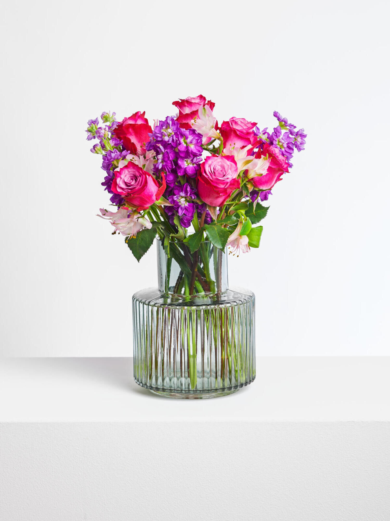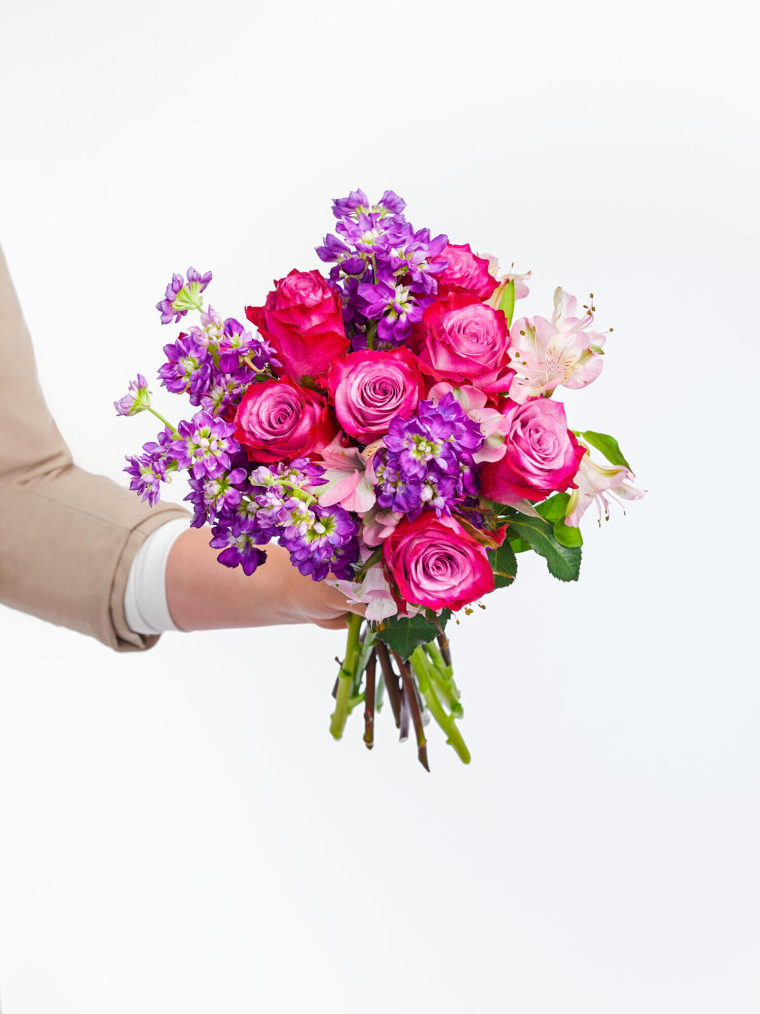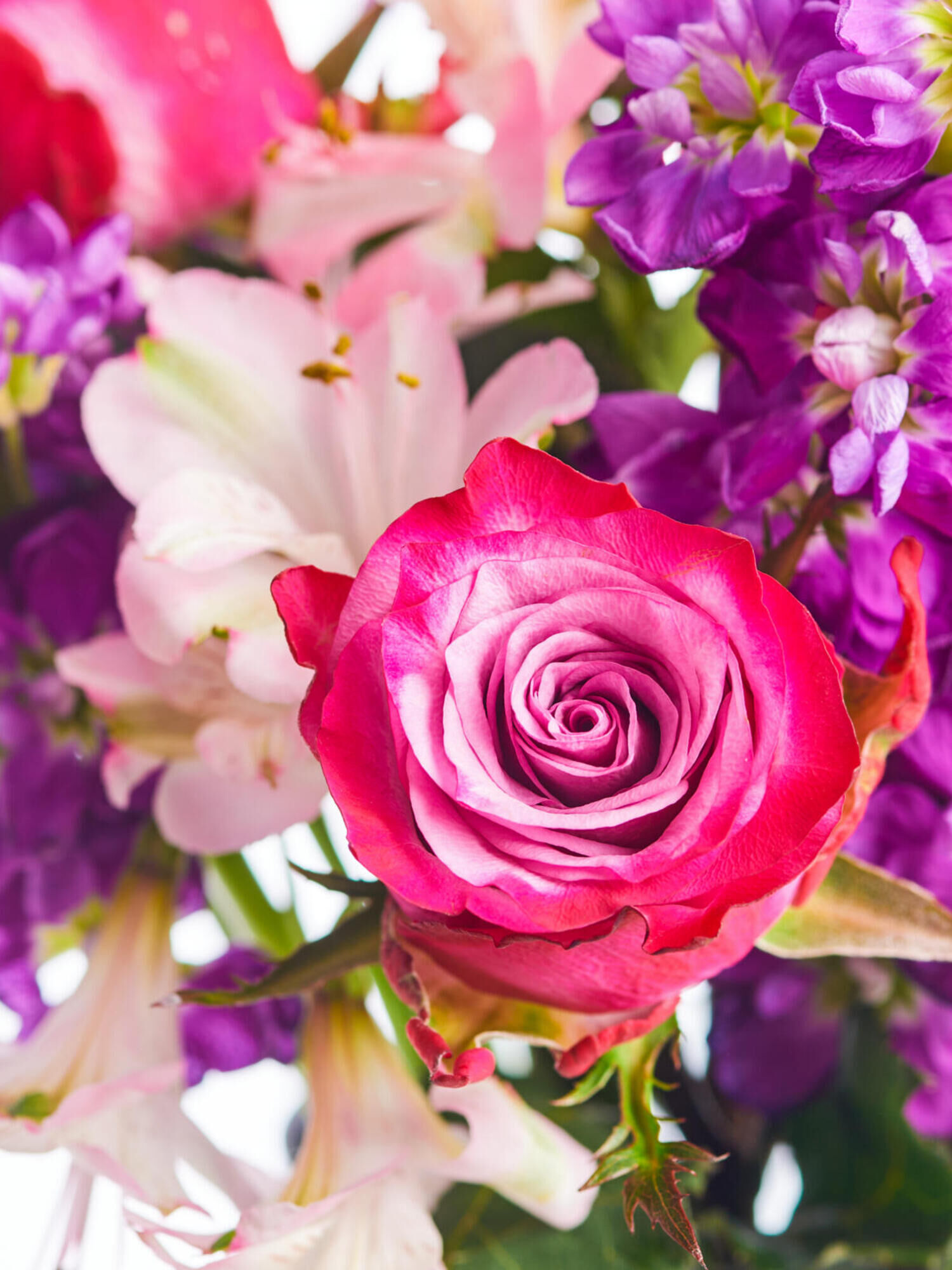 Strauß in Violett mit Rosen, Levkojen und Alstroemerien bestellen und versenden. ➤ Jetzt deutschlandweit Blumengrüße mit Fleurop verschicken.